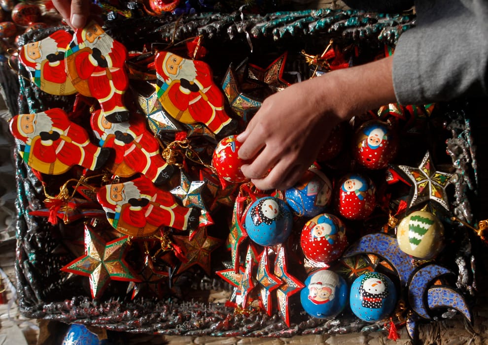 另一方面,也有部分紙漿藝術的工匠積極開發像是手機支架、筆筒等新產品。圖為一名紙漿藝術工匠正在整理剛完成的聖誕節飾品。