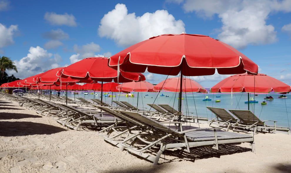 路透社 / 達志影像島身呈東北、西南走向的關島,熱門飯店區位於西北面杜夢灣(Tumon Bay)一帶,這兒也是大部分旅人的落腳處,綿長的海灘不僅水清沙細,沿灣而建的高級國際連鎖品牌飯店櫛比鱗次,選擇眾多,離灣北不遠的戀人岬,更是初訪關島的必遊景點。