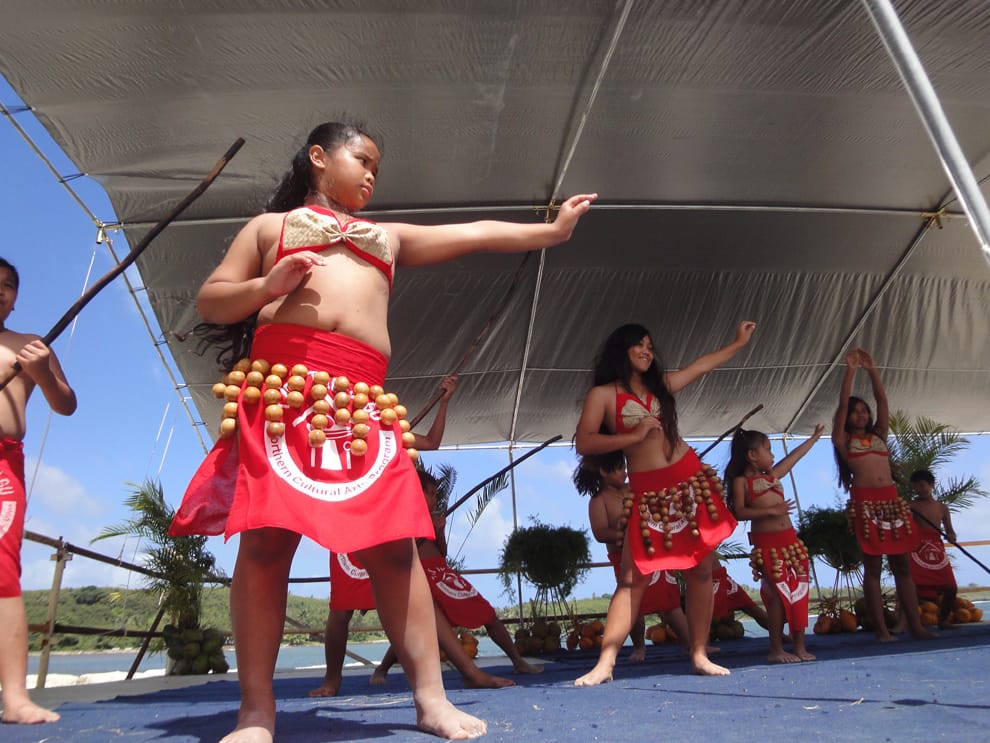 拜Air V&V之賜,很多人可能因此決定踏上這處查莫洛族的世居地。本照為穿著傳統服飾進行表演的查莫洛族女子。