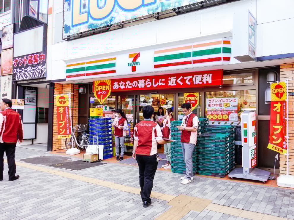 當這項外送服務全面拓展開來時,預期每間7-11門市只要需要負責方圓500公尺的住家。本照為東京池袋西口公園前的7-11。