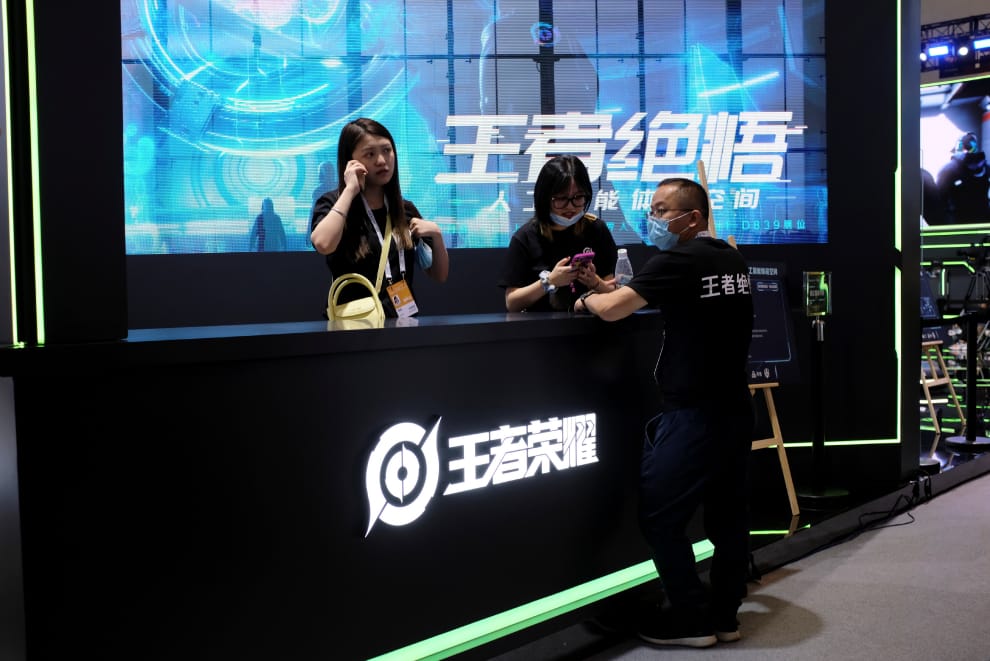 本照攝於上海,為今年七月舉辦的世界人工智能大會(WAIC)會場,畫面中為騰訊旗下的遊戲《王者榮耀》的櫃位。《經濟參考報》於本月 3號的報導中表示,《王者榮耀》的遊戲特性讓其「獲得了病毒式傳播和無可複製的玩家黏性」。