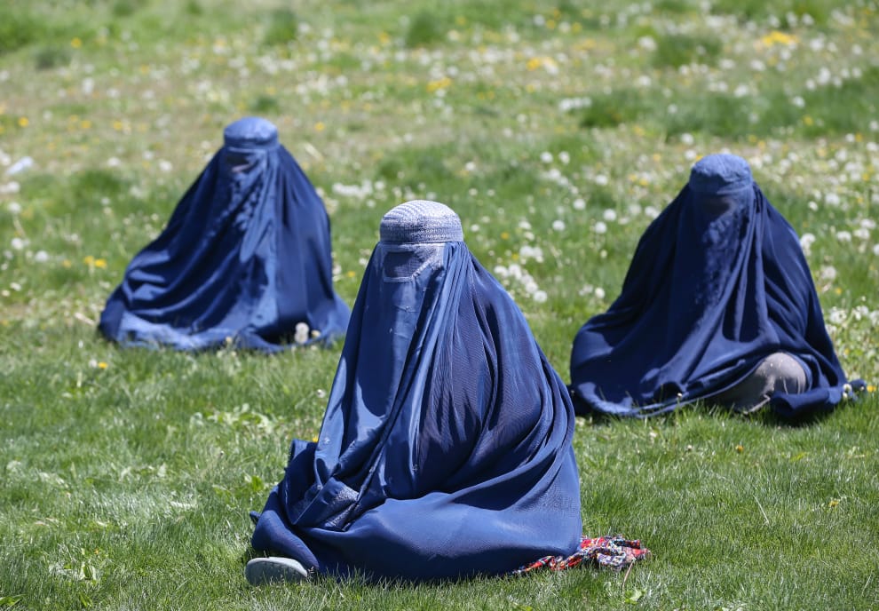 本照攝於今年四月,為三名穿著「chadari」的阿富汗女性。