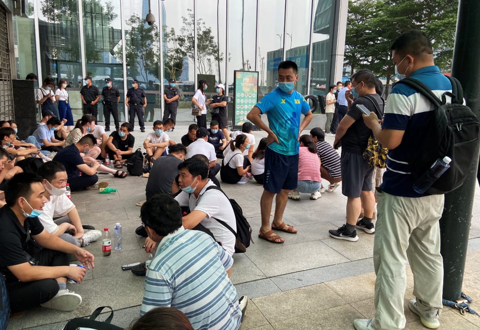 面對前來恒大深圳總部外抗議的民眾,恒大派出大批保全維持秩序。現在,不只投資人對恒大失去信心,就連員工也不挺恒大。
