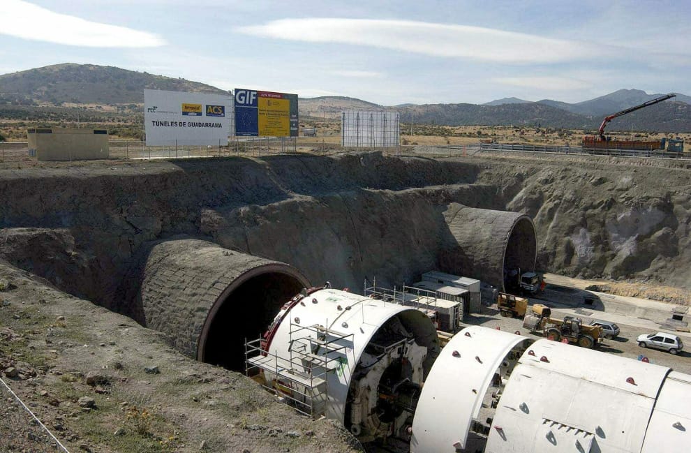 西班牙高鐵發展至今雖然成就斐然,但中間其實也走過了不少坎途。圖為 2002年時,工人們在西班牙首都馬德里北部的瓜達拉馬(Guadarrama)山脈興建隧道的照片。