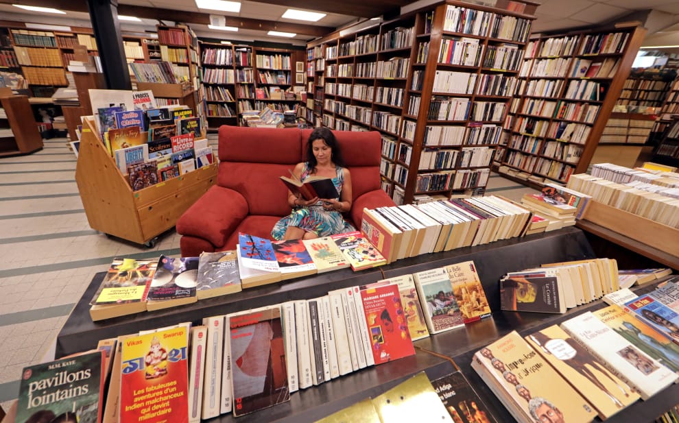在法國東南部城市尼斯(Nice),一名女子在Brouillon de Culture Sorbonne書店中閱讀。