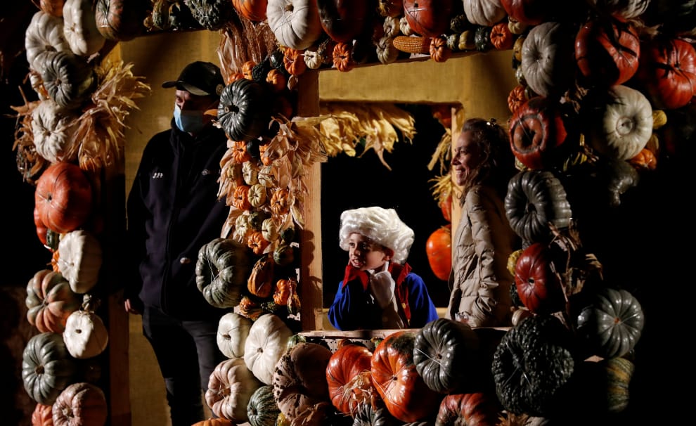 在加州城市拉肯亞達-弗林楚奇(La Canada Flintridge),德斯坎索植物園(Descanso Gardens)舉辦了萬聖節主題展覽活動「雕刻」(Carved)。畫面中,一名七歲的小男孩與他的家人正在擺滿南瓜的展區中閒逛。