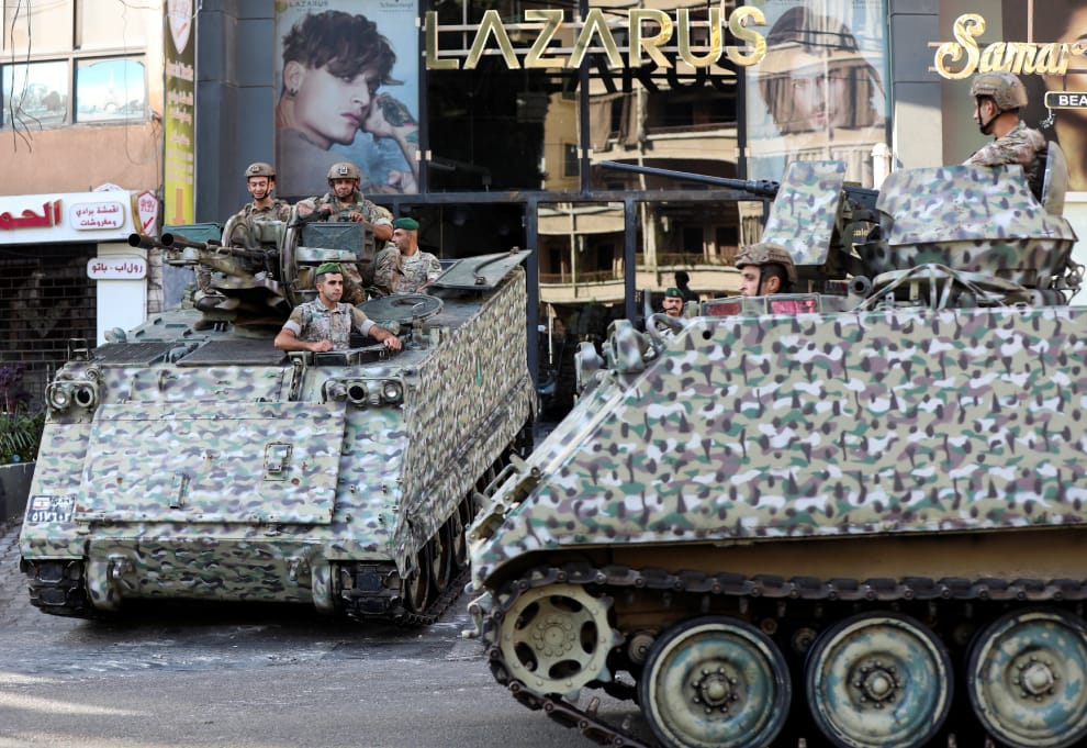 本照畫面攝於槍戰隔日(15),坐在裝甲車內的黎巴嫩軍隊正於街頭進行巡視。