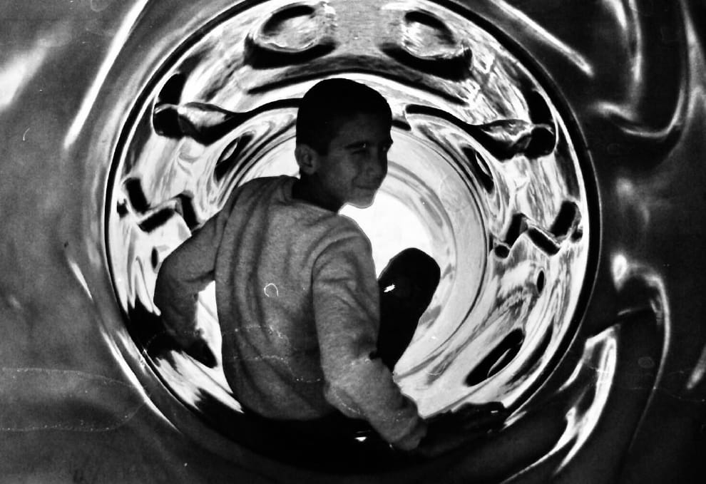 網友Sirkhane darkroom孩子在溜滑梯中玩耍,本照由 10歲的哈穆德(Hamoude)所拍攝。
