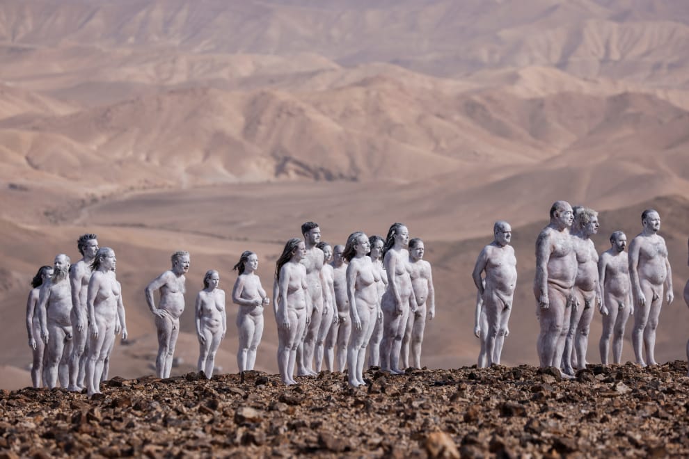 在以色列南部城市阿拉德(Arad),以拍攝裸體人像而聞名的攝影師圖尼克(Spencer Tunick)再次找來了好幾位裸體模特兒擔綱主角,拍攝呼籲大眾重視死海生態議題的照片。