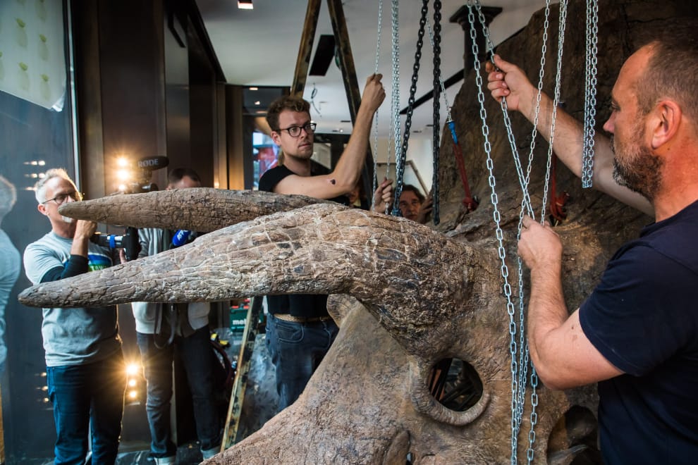 本周四(21),在巴黎的Drouot拍賣會上,一具 8公尺長的三角龍骨骼化石以 660萬歐元(折台幣約 2億1000萬元)成交。得標者是一位匿名的美國收藏家,他擊敗了其他 10個競標者,與其中 3位的競爭尤其激烈,4個人在最後的幾分鐘內積極搶標,將價格推至最終的高價。