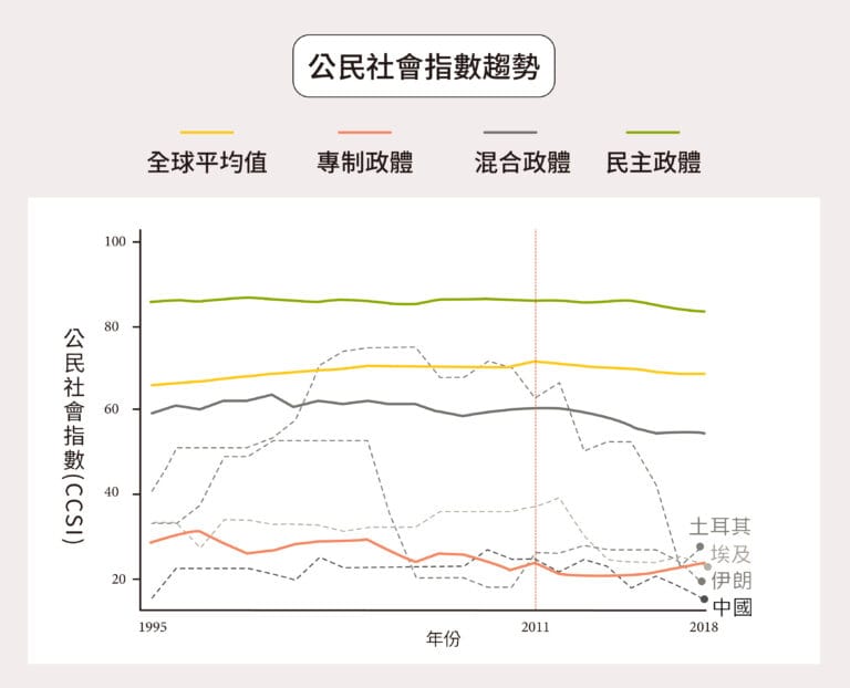 「我們的研究發現,網路覆蓋率已經跟公民社會的活力脫鉤,也跟政治體制脫鉤。」林宗弘分析,在威權國家底下,網路科技是推進新興經濟、科技產業的工具,但同時也是澆熄公民社會的武器。