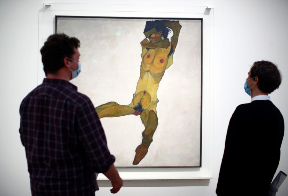 奧地利首都維也納的一眾博物館們一直有個大煩惱,每當它們想在社群媒體上分享包含裸體的藝術品時,老是會被演算法找碴、被認定為色情內容而下架。圖為兩名觀光客,正在奧地利的利奧波德博物館裡欣賞奧地利畫家席勒的作品。