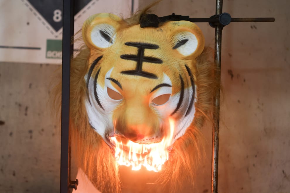 在智利首都聖地牙哥(Santiago)的一間實驗室裡,衛生單位正在檢查一副標榜可燃的萬聖節面具。