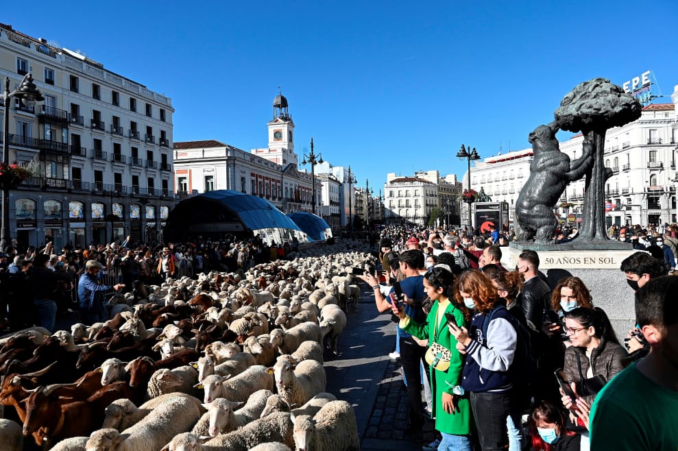 西班牙馬德里一年一度的「遷徙放牧節」(Transhumance Festival,註)始於 1994年,由觀光旅遊局推動,旨在向傳統山牧季移的牧羊方式致敬,允許牧羊人在這天使用傳統的路線,帶領羊群從西班牙北部前往更南邊、地勢也較低的牧場進行冬季放牧。而坐落在古老遷徙路線上的馬德里,平時車水馬龍的市中心道路,也會在遷徙放牧節期間化身為「羊群專用道」。