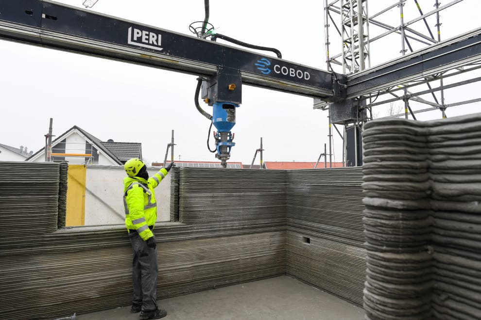 西昆士蘭州理事會聯盟的成員表示,3D列印技術是解決它們缺房困境的辦法之一。圖為德國南部小鎮瓦倫豪森(Wallenhausen)一處正在應用 3D列印技術蓋公寓的工地。