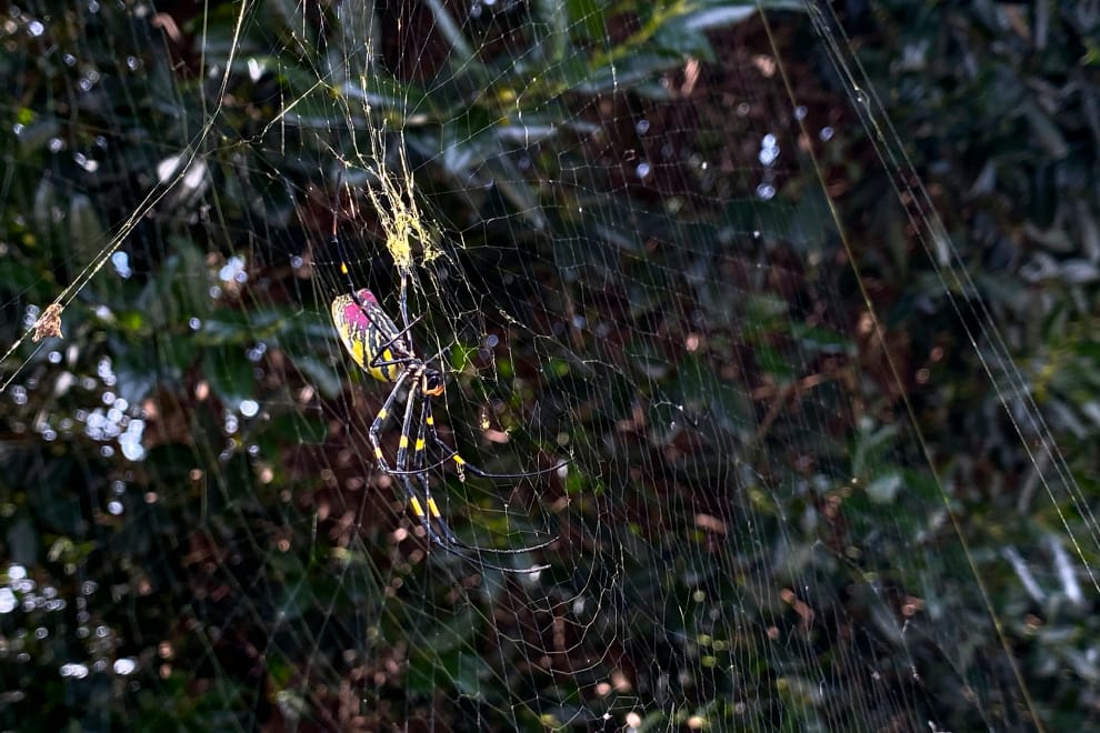 然而,這個預想卻被破壞了。許多當地人如今一走出家門,就會迎面撞上黏人、長達 3公尺的蜘蛛網,而這是大家以往未曾想過的情況,畢竟這種蜘蛛——橫帶人面蜘蛛(Trichonephila clavata,註1),本不屬於此地。