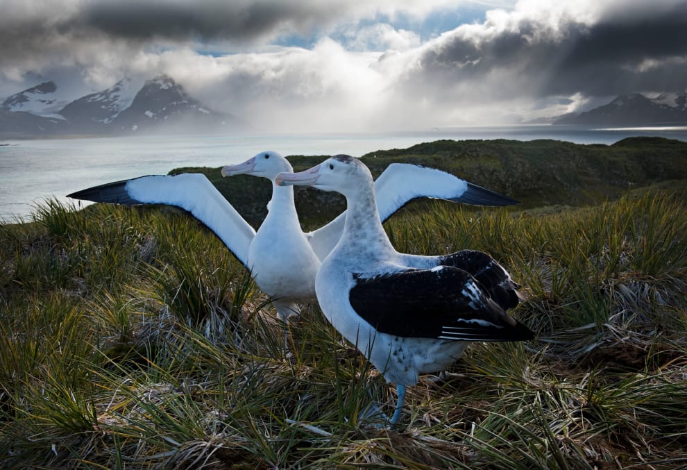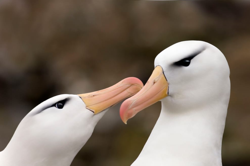 信天翁是一種以「專情」而聞名的鳥類,可是最近生物學家發現,氣候變遷無形中也增加了信天翁夫妻分手的比例。圖為一對黑眉信天翁(Thalassarche melanophris)。