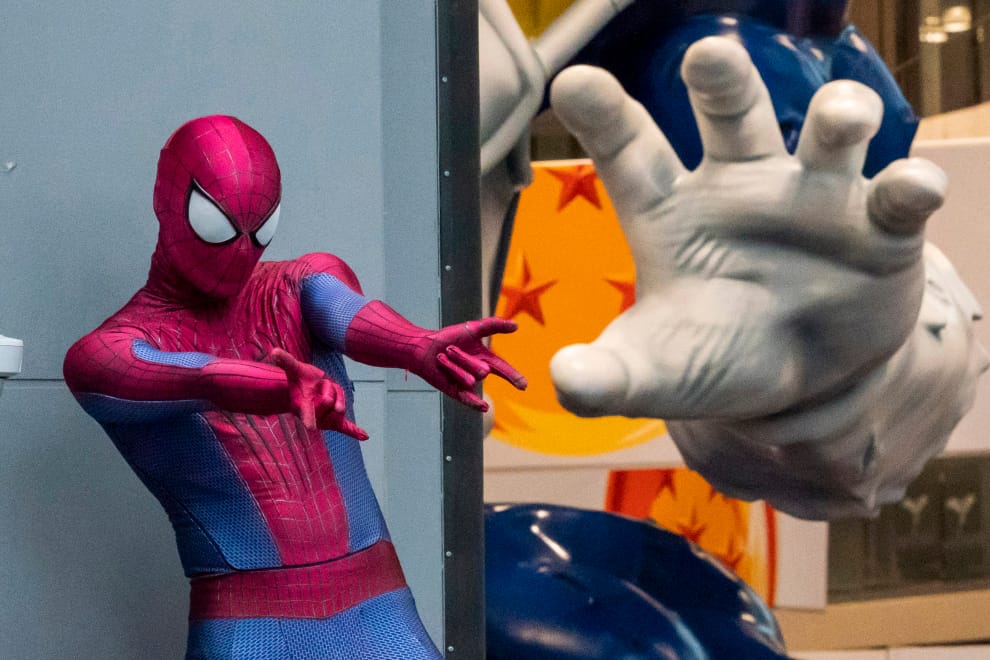 隨著《蜘蛛人:無家日》即將上映,發行商索尼影業和連鎖電影院AMC合作推出了買預售票送NFT的活動。本照攝於今年10月舉辦的紐約動漫展(New York Comic Con),為一名裝扮成蜘蛛人的影迷。