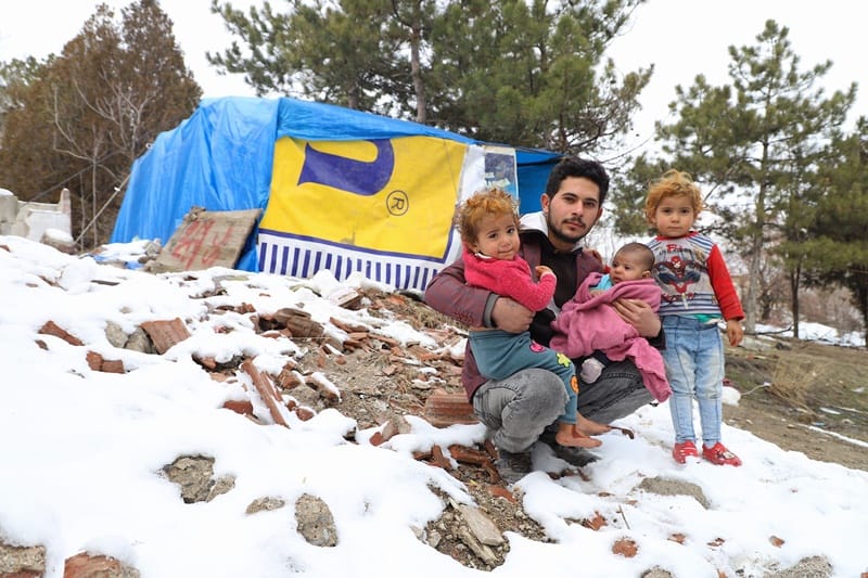 20歲敘利亞庫德人阿里棲身土耳其安卡拉東南郊山丘帳篷內多年,子女陸續出生。照片攝於今年1月。