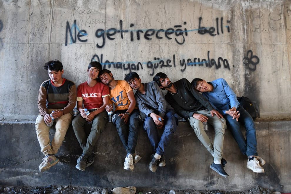 土耳其總統埃爾多安已經宣布,未來任何來到土耳其的阿富汗人,都必須再到第三國尋求安置。圖為一群在土耳其東部凡省(Van province)郊區、互相靠著彼此身體休息的阿富汗民眾。