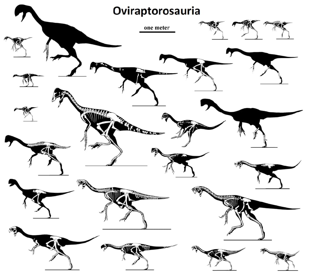 偷蛋龍存在於白堊紀晚期(Late Cretaceous),也就是約1億至6,600萬年前,棲息地為現代的亞洲和北美洲。本照為不同種的偷蛋龍骨骼與模擬型態圖。