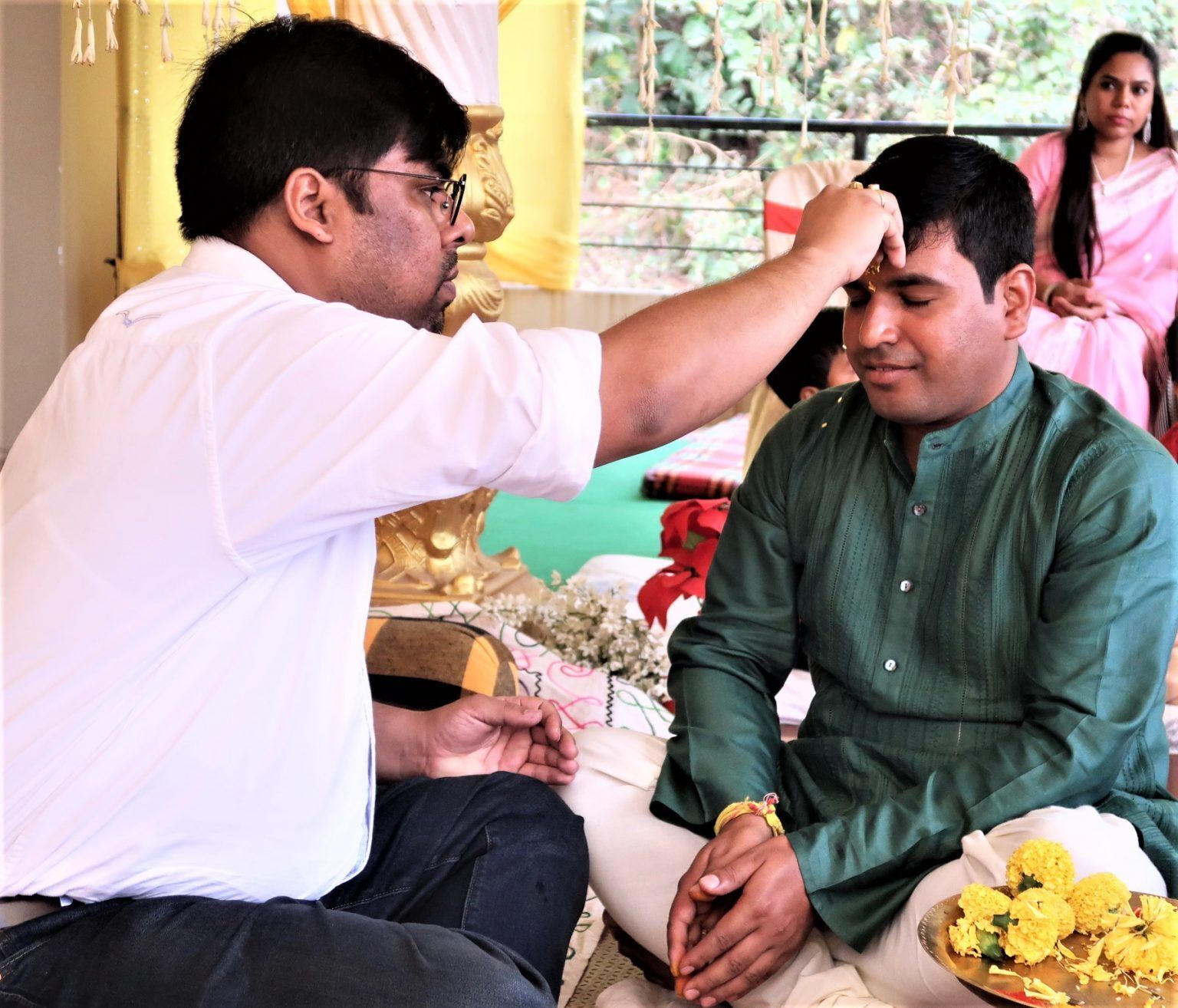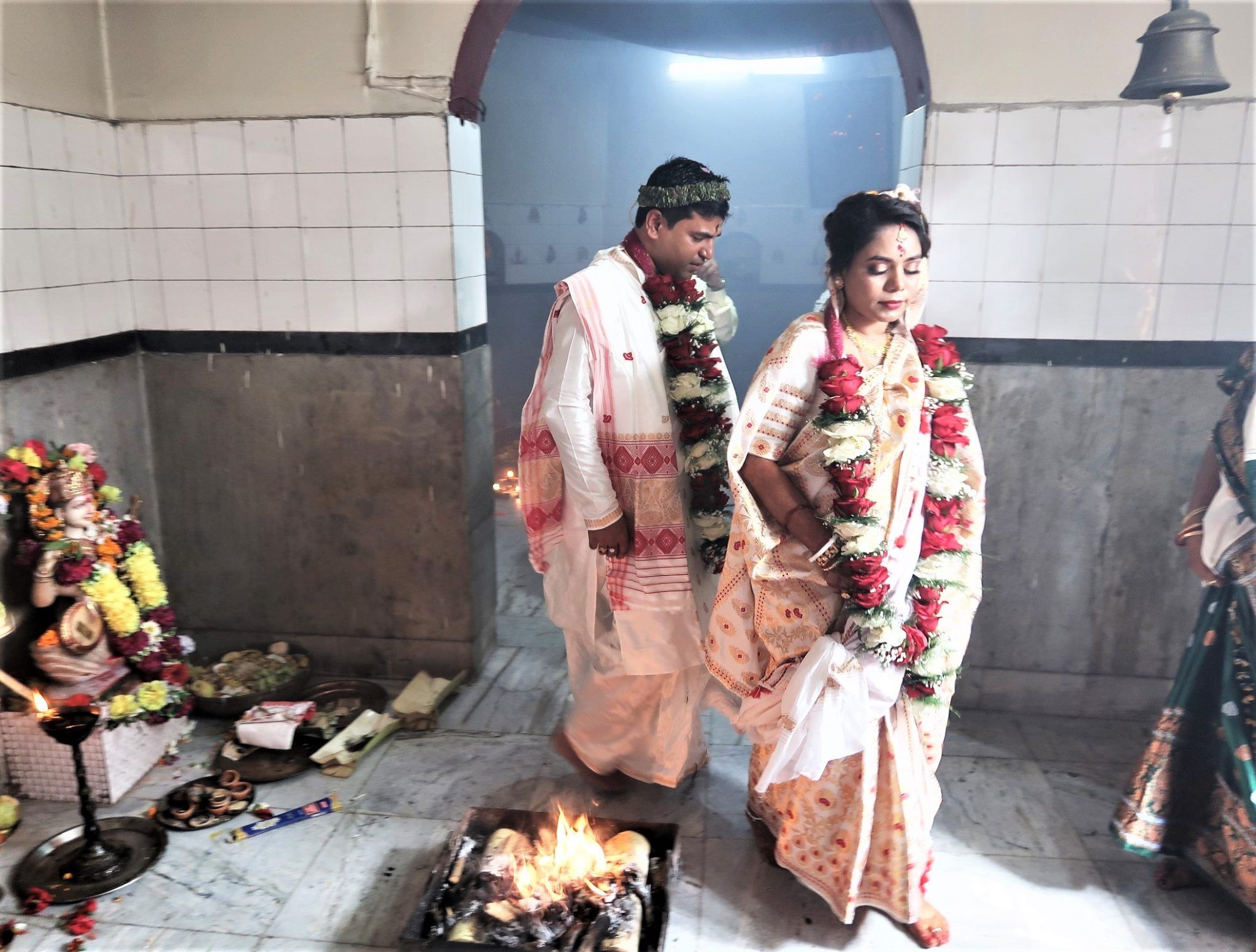 茱然禮的隔天是婚禮正式舉行的日子,理想的舉辦地點是在男方家中,但對這對跨種姓的新人來說是不可能的。最後兩人在叔叔選定的一間位於古瓦哈蒂市區的印度教寺廟成婚。按照阿薩姆習俗,新郎的母親在婚禮當天並不出席,但代表父親的叔叔當然也沒有來。一場不能在家中舉辦且男方家長未到場的婚禮。這是第二個遺憾……