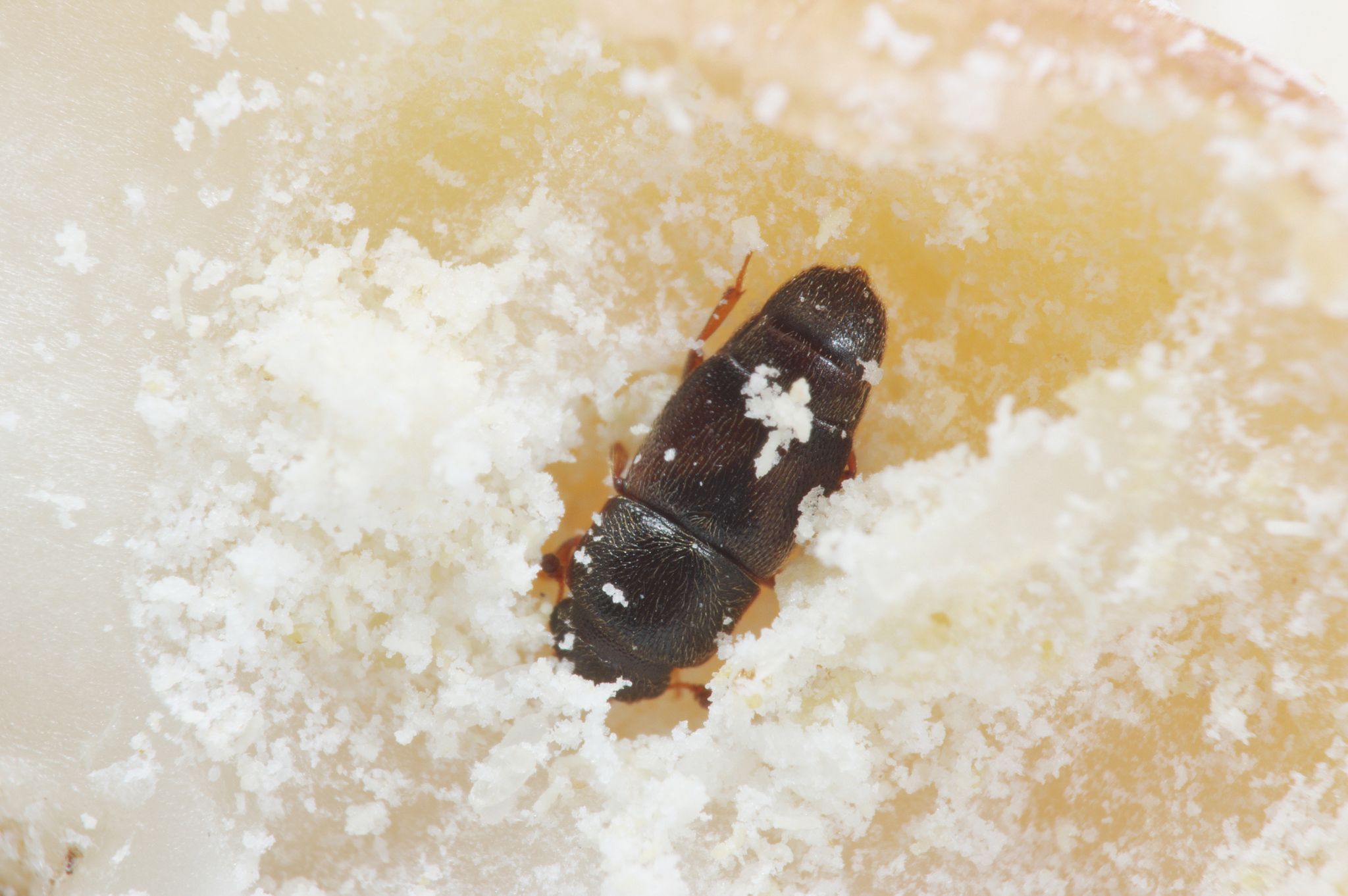 很多乾燥的堅果、種子製品是由國外進口,這類食品常被當成零食,或添加在料理中。如果在食品包裝裡發覺明顯的粉狀碎屑,或堅果表面有些許蛀洞,這些跡象通常與甲蟲類有關。