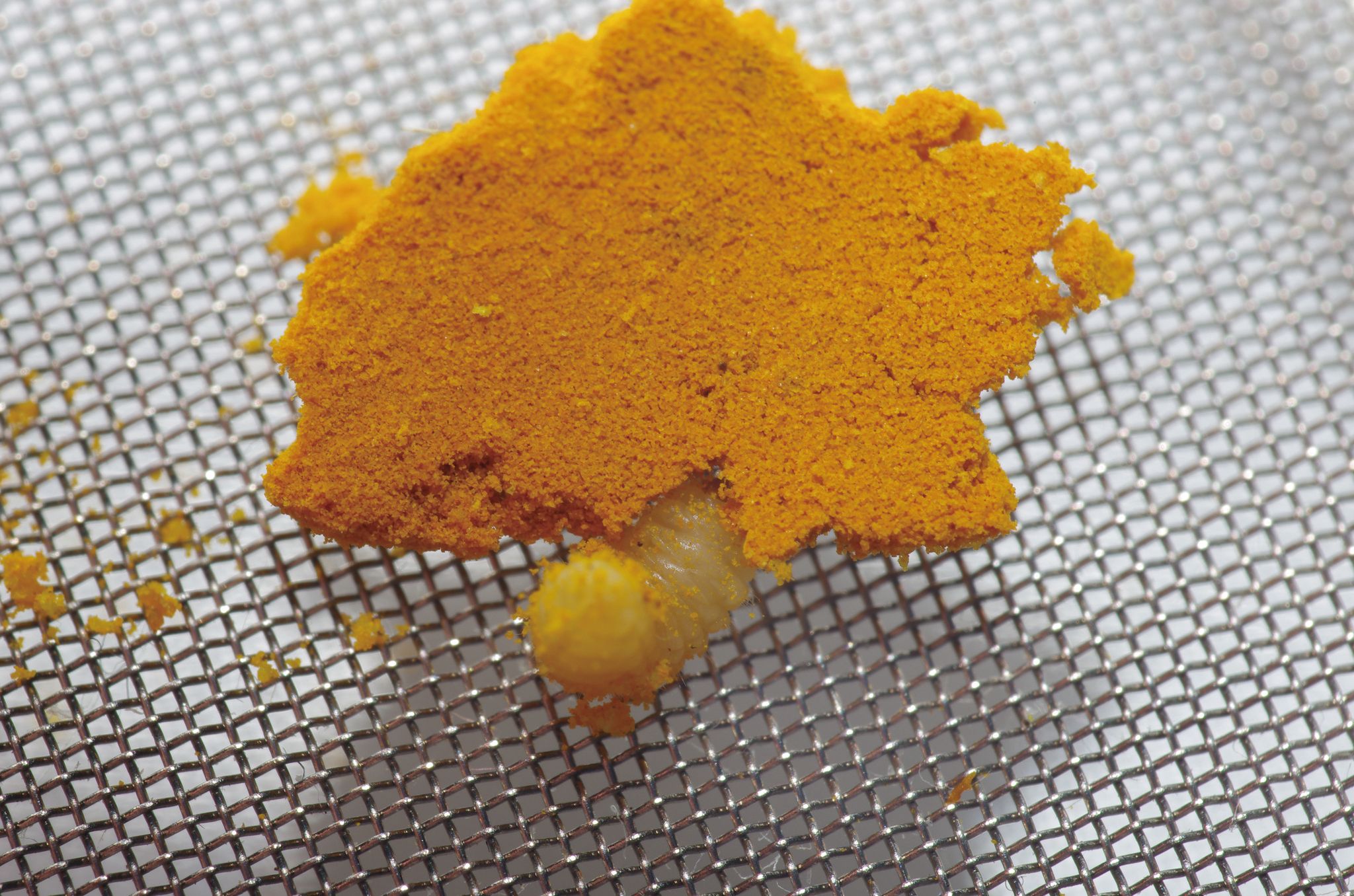 薑黃粉中發現的長角象鼻蟲幼蟲。