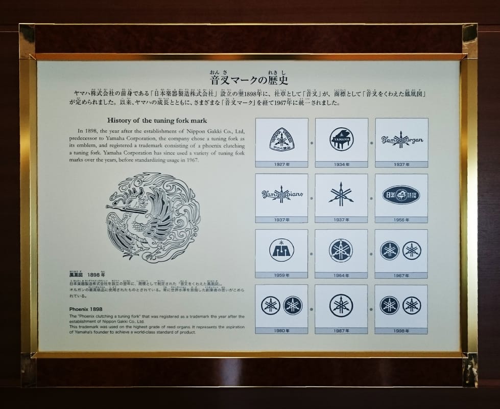 編註:1955年,旗下摩托車部門從當時的母公司「日本樂器製造株式會社」獨立出來營運,為「山葉發動機株式會社」(ヤマハ発動機株式会社),商標上同樣沿用Yamaha字樣與音叉圖樣,但細節上有所不同。