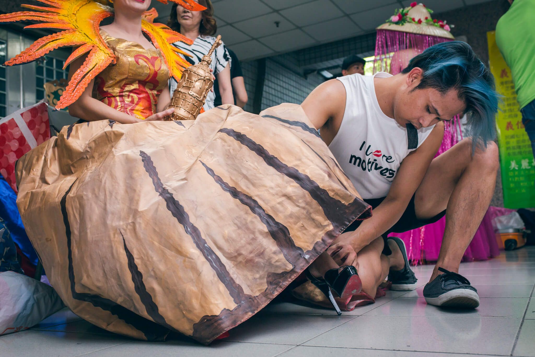 2015 年的時候,在台中有一個為了菲律賓獨立紀念日舉辦的走秀比賽,我的一個朋友也有參加,但他沒有時間和多餘的錢買新的服裝,他知道我高中的時候學藝術的時候,就請我幫忙做參賽的服裝。一開始我有點抗拒,畢竟來台灣工作幾年,已經很久沒拾起畫筆了,或許功力早已生疏了不少。幾經猶豫,我還是咬牙答應了,結果我不只做一件,還替其他三個人完成他們的服裝。