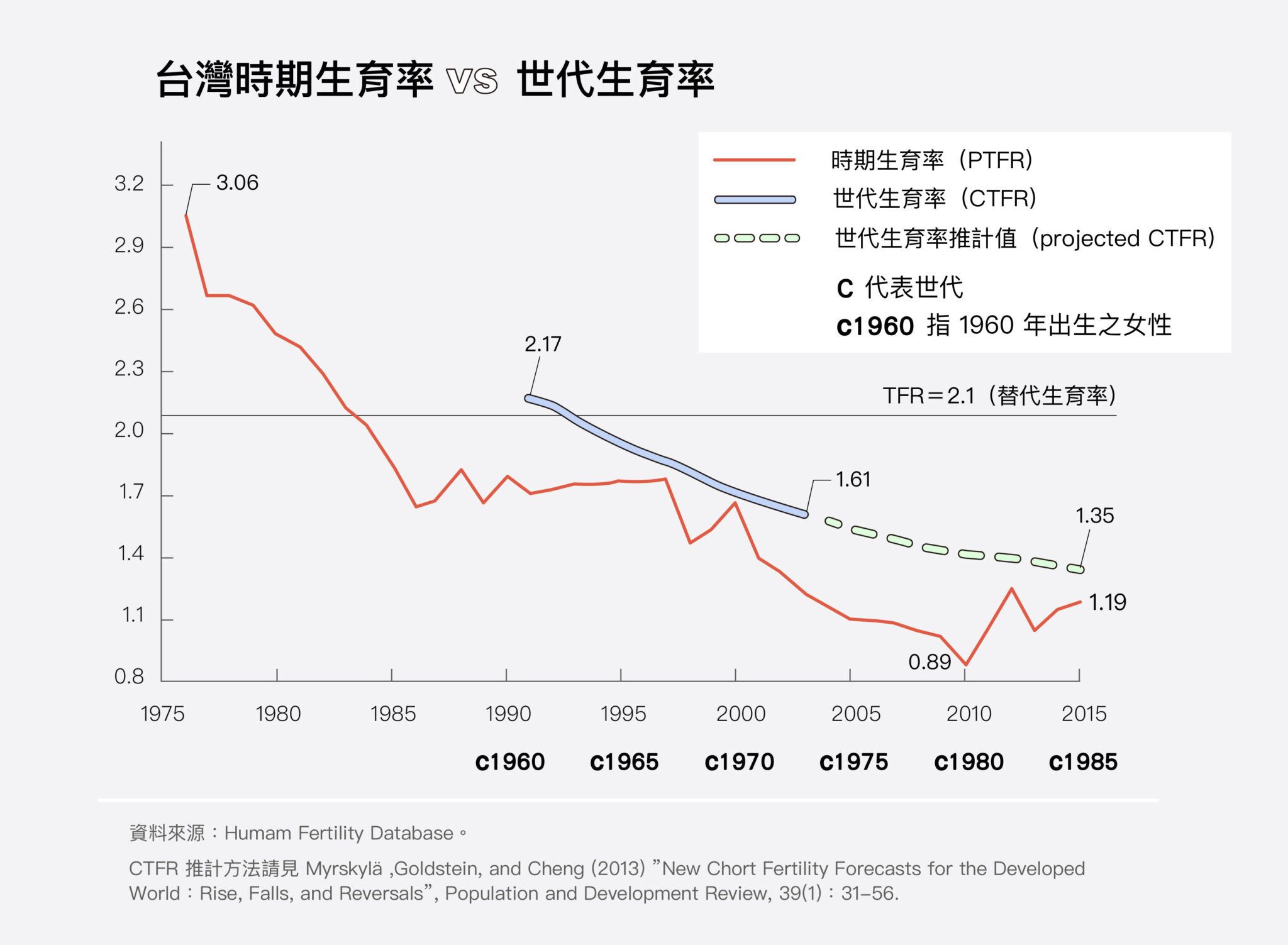 「PTFR 適合用來比較全世界的生育概況,描繪出鉅觀的圖像。但是若一個社會經歷劇烈變化,要精準地分析生育狀況與診斷低生育率成因,世代生育率(CTFR)是比較可靠的指標。」