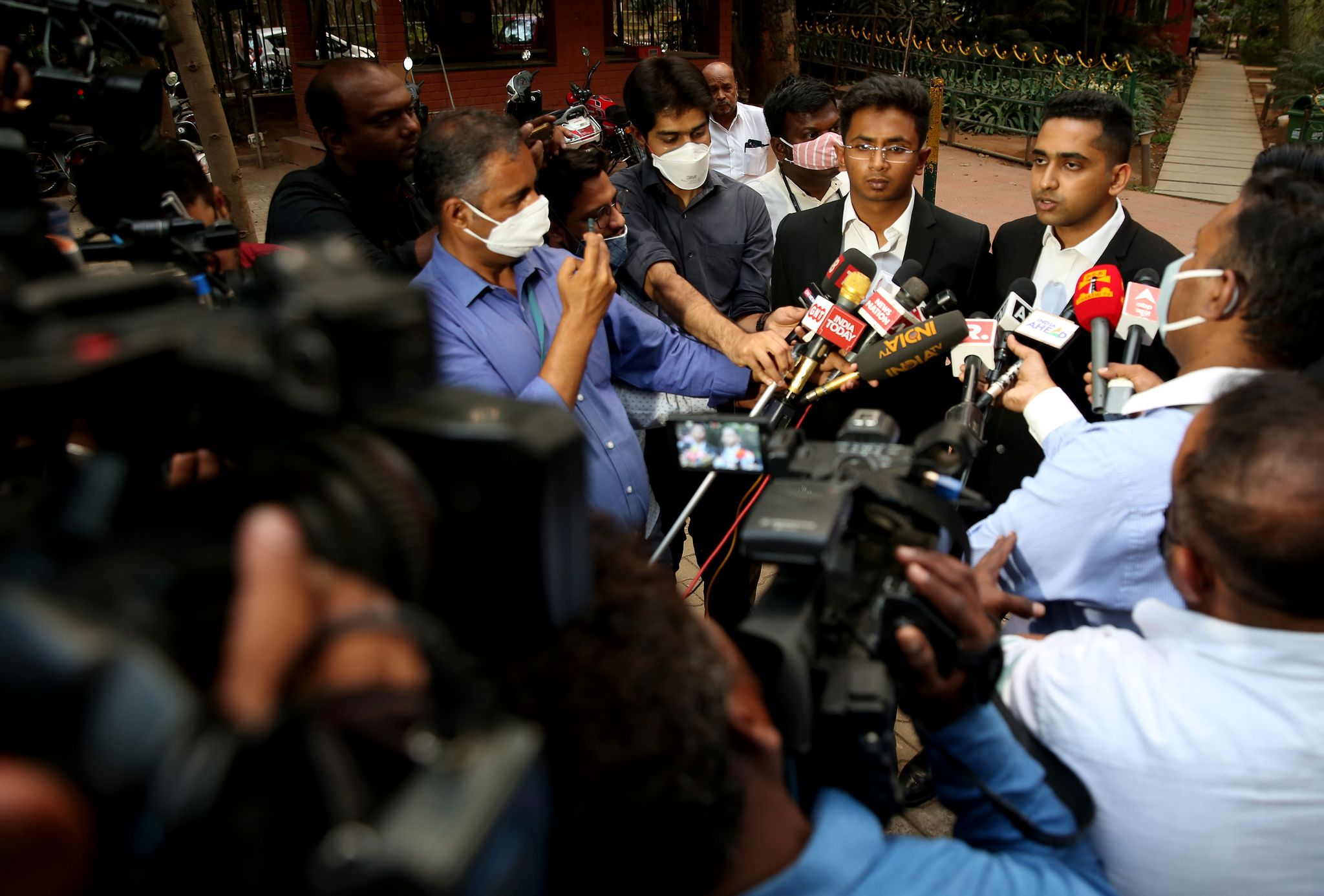周二(8),印度最高法院的法官在休庭後向記者發表談話。