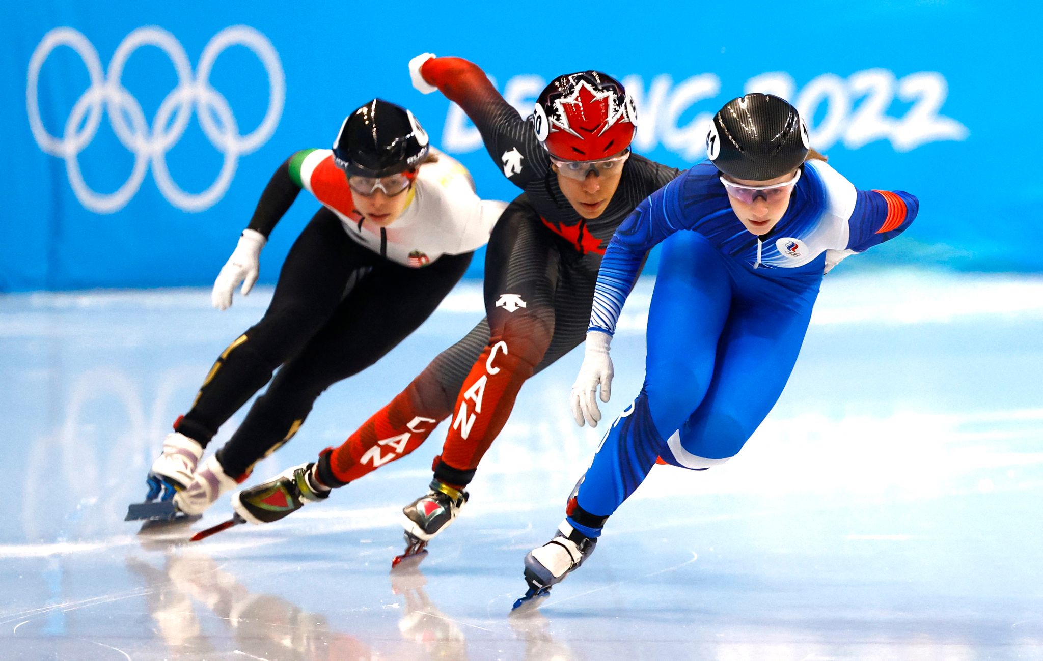 受制於中國強勢的「清零」防疫政策,波蘭短道競速滑冰選手瑪莉謝夫斯卡在參賽前夕被宣布確診必須隔離,錯過了整場賽事。圖為本屆北京冬奧女子500公尺短道競速滑冰照片。