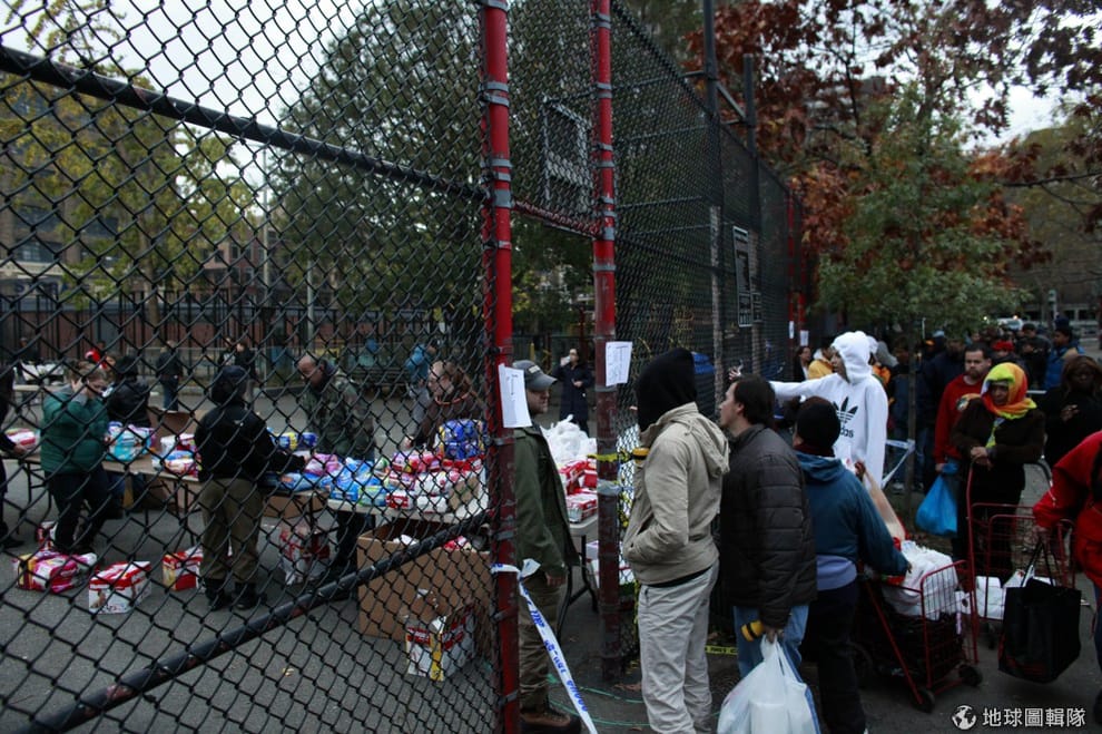 紐約市的救援物資中心,有著長長的人龍,大家正等著領取日用品像是尿布、飲用水、食物等等。圖片來源:Allison Joyce/Getty Images