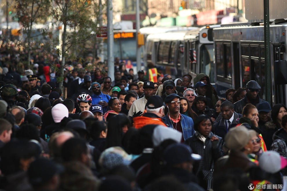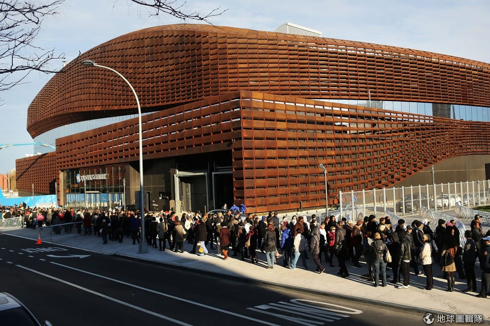 紐約新成立的巴克萊中心(Barclays Center)前擠滿要搭公車的人龍。圖片來源:Spencer Platt/Getty Images