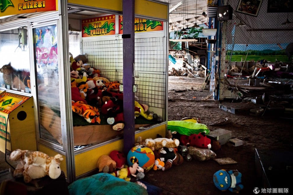 受損嚴重的遊樂園,全是一片泥濘。圖片來源:Andrew Burton/Getty Images