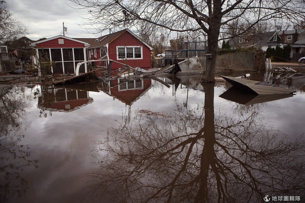 紐澤西的房舍仍泡在汪洋大水中。圖片來源:Mario Tama/Getty ImagesJohn Moore/Getty Images