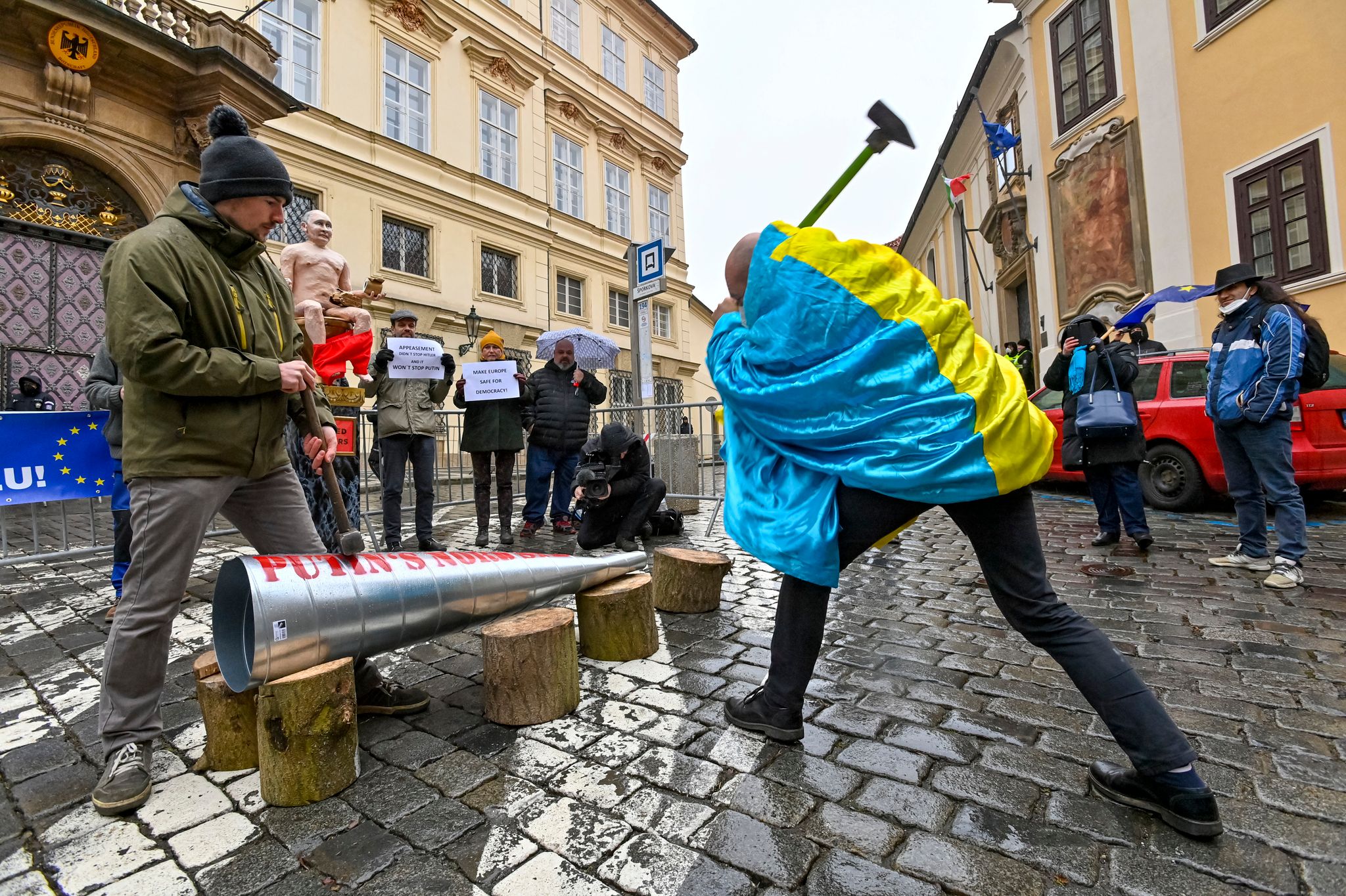1月27日,捷克的反俄組織Kaputin與歐洲脈動(Pulse of Europe)在捷克首都的德國大使館前進行抗議,拿槌子砸碎了象徵北溪2號的管線。