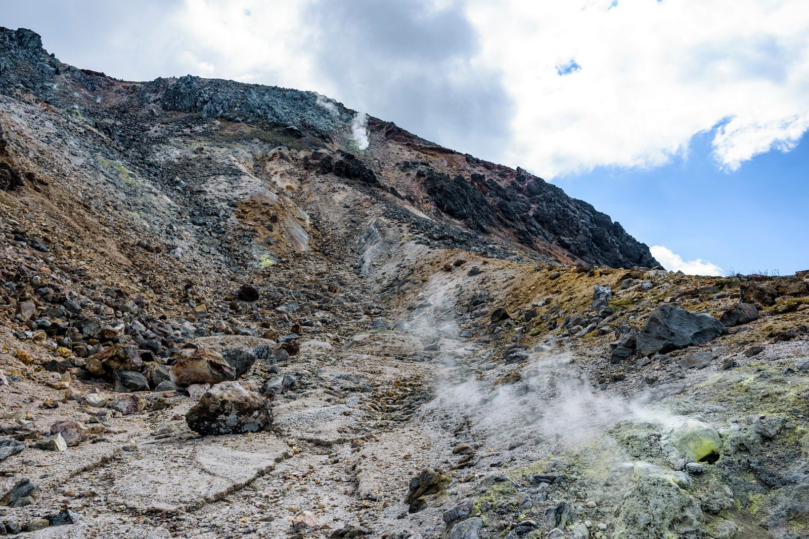 那須岳(茶臼岳)是栃木縣最北端的活火山,目前地表仍然不停冒出白煙。