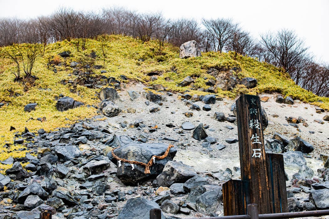 在日本栃木縣的那須湯本溫泉附近,有個名為「殺生石」的知名景點,俳聖松尾芭蕉也曾造訪此地。據說這顆有著煞氣名字的石頭封印著九尾狐的怨靈,而這樣的傳說故事讓當地人和觀光客都津津樂道。