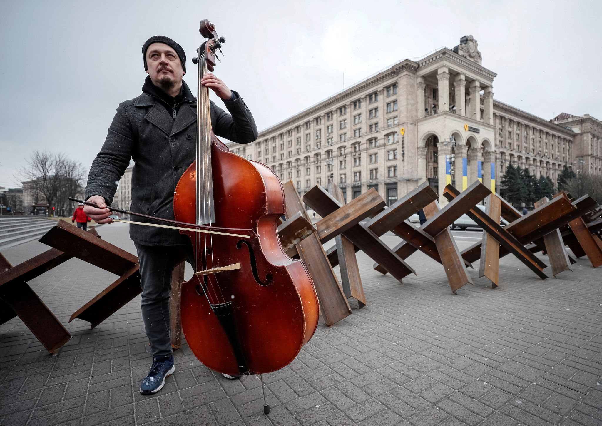 悠揚的樂聲飄盪在基輔的空中,在俄羅斯軍隊步步逼近基輔的時刻裡,廣場上的人們透過了音樂偷得了短暫的平和時光。