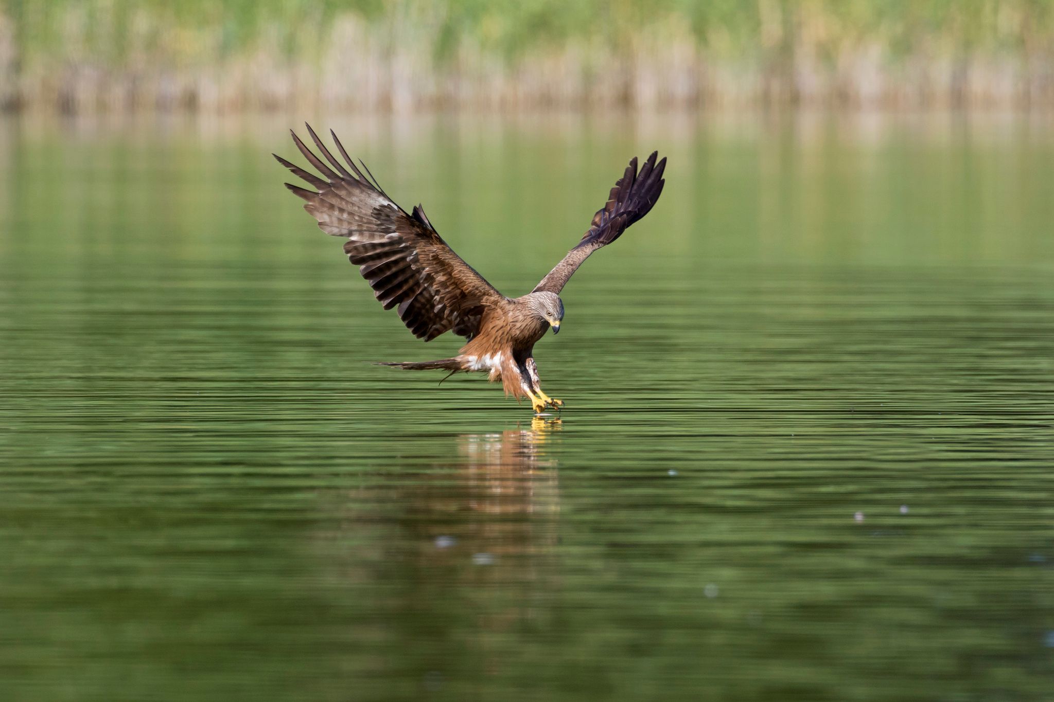 圖為黑鳶在水面捕食的畫面。澳洲鳥類學家葛斯福表示,他曾在火災中看過黑鳶和嘯栗鳶在火焰中來回滑行、覓食的畫面。