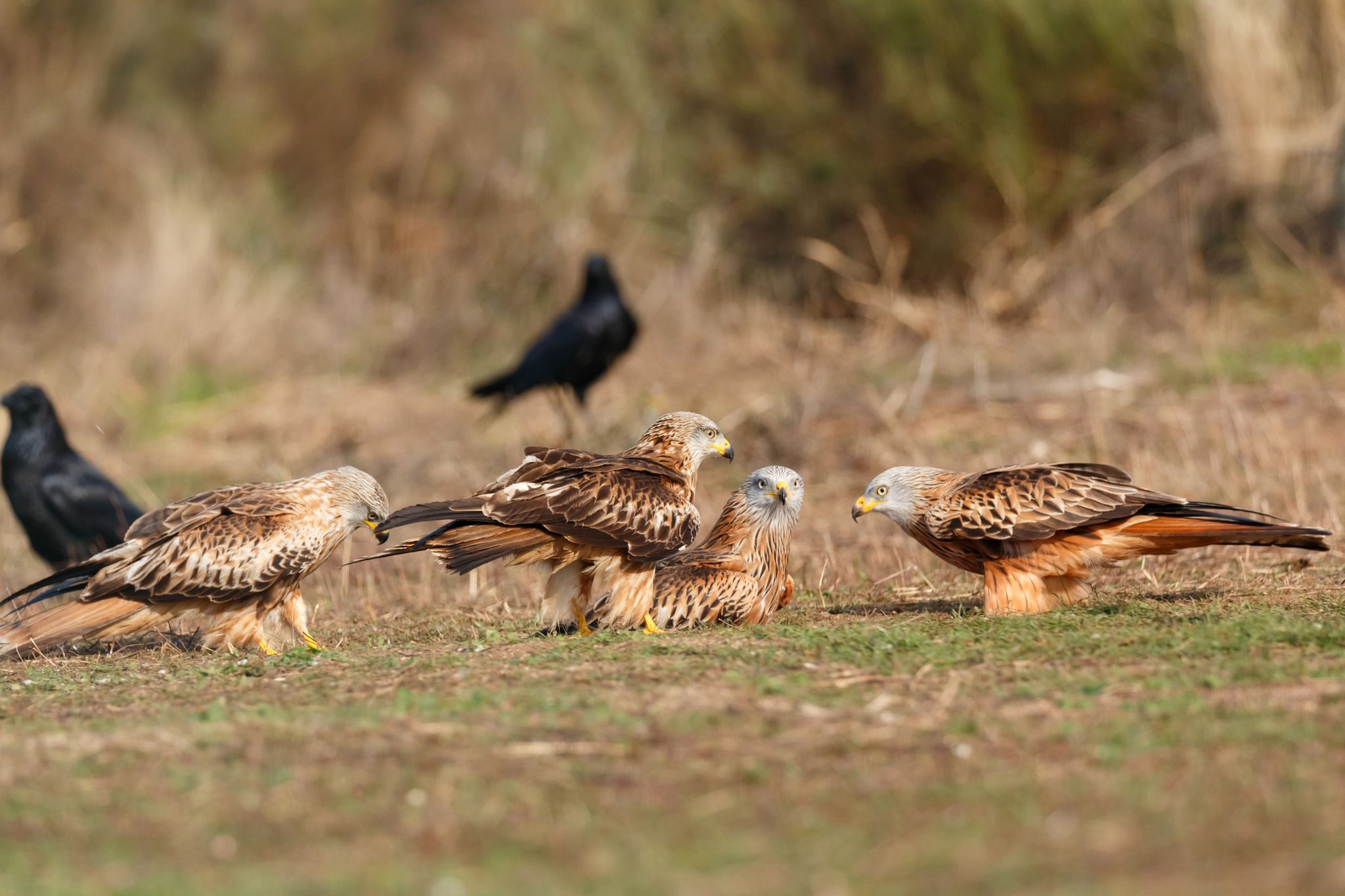 圖為一群黑鳶,交頭接耳的模樣,彷彿在討論如何「集體縱火」一般。