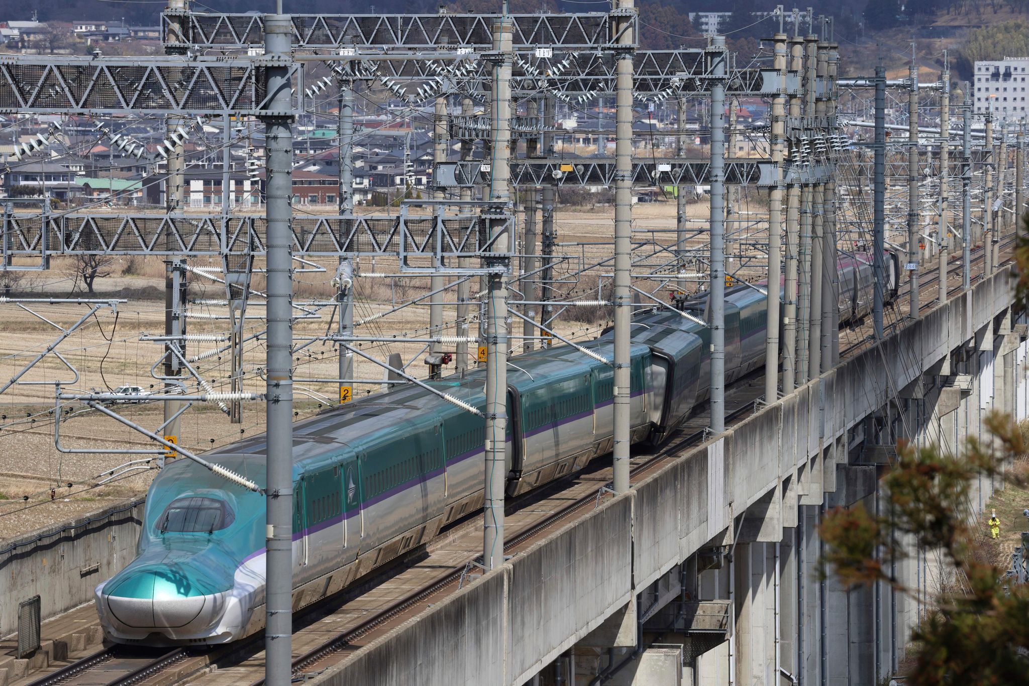 在昨晚的強震後,一台行經宮城縣白石市的新幹線子彈列車也發生出軌意外,照片中明顯可以看到有一節車廂脫出鐵軌。