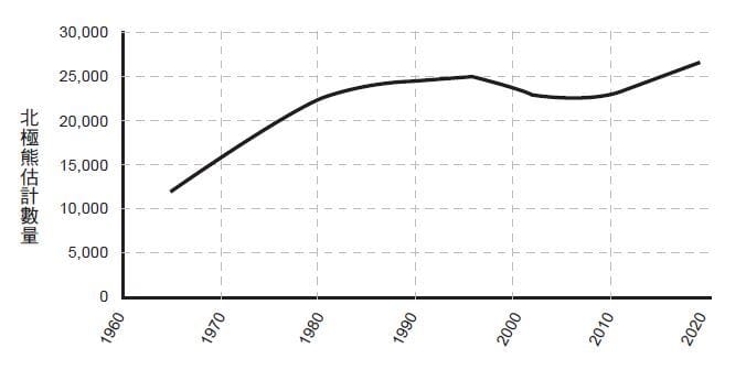 當「北極熊專家組織」(Polar Bear Specialist Group)內的自然環境保護主義者,在廿世紀六○年代開始研究北極熊數量時,他們明確發現,北極熊最大的威脅是濫捕。當時,人們認為全球北極熊的數量約為五千至一萬九千頭。獵殺受到管制,到了一九八一年,官方估計的數量增加到近二萬三千頭。此後,北極熊的數量大抵上一直在增長。該組織最新的官方數據是二○一九年,統計數量是目前為止最高的一次,總數達到二萬六千五百頭。