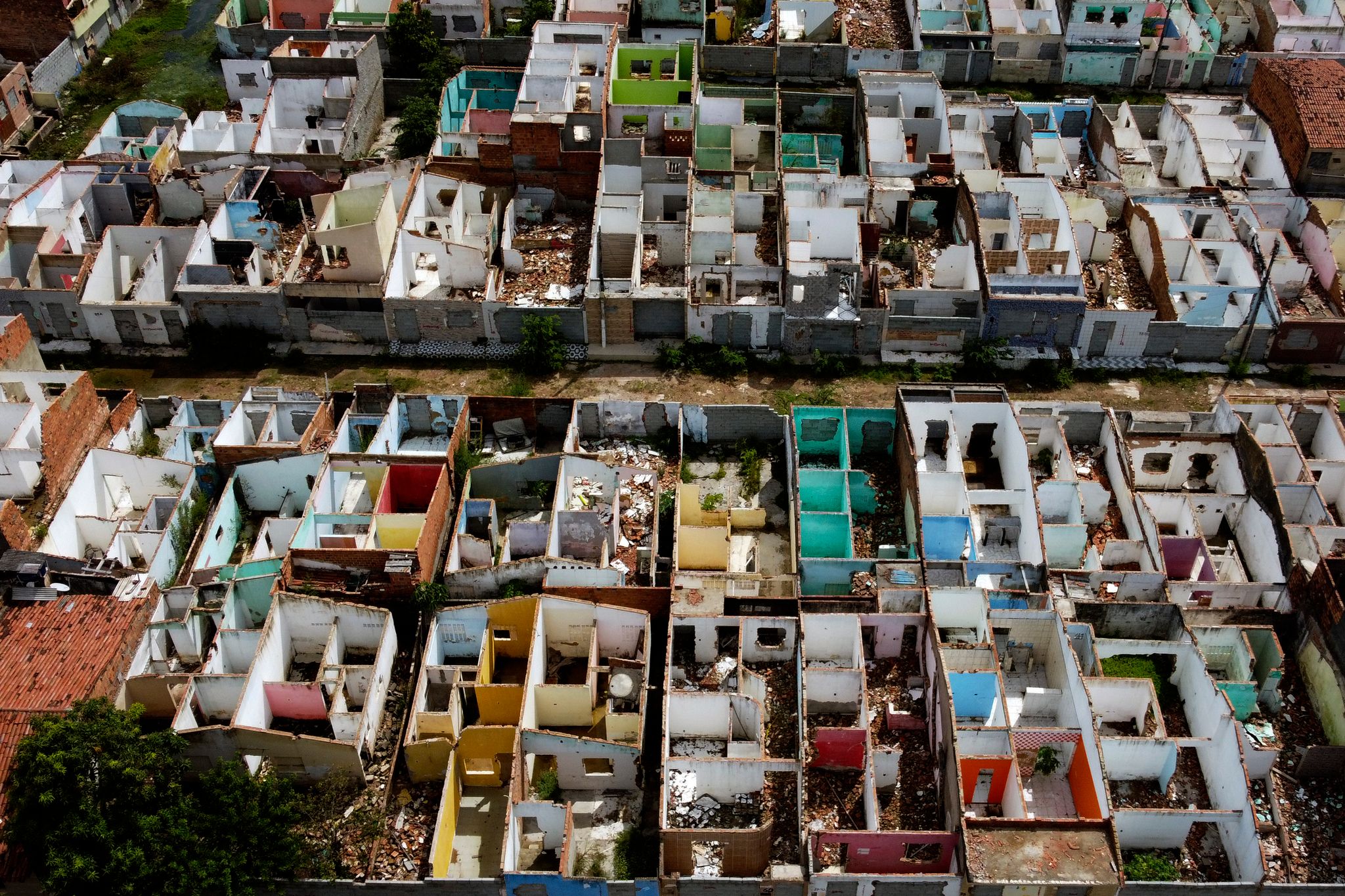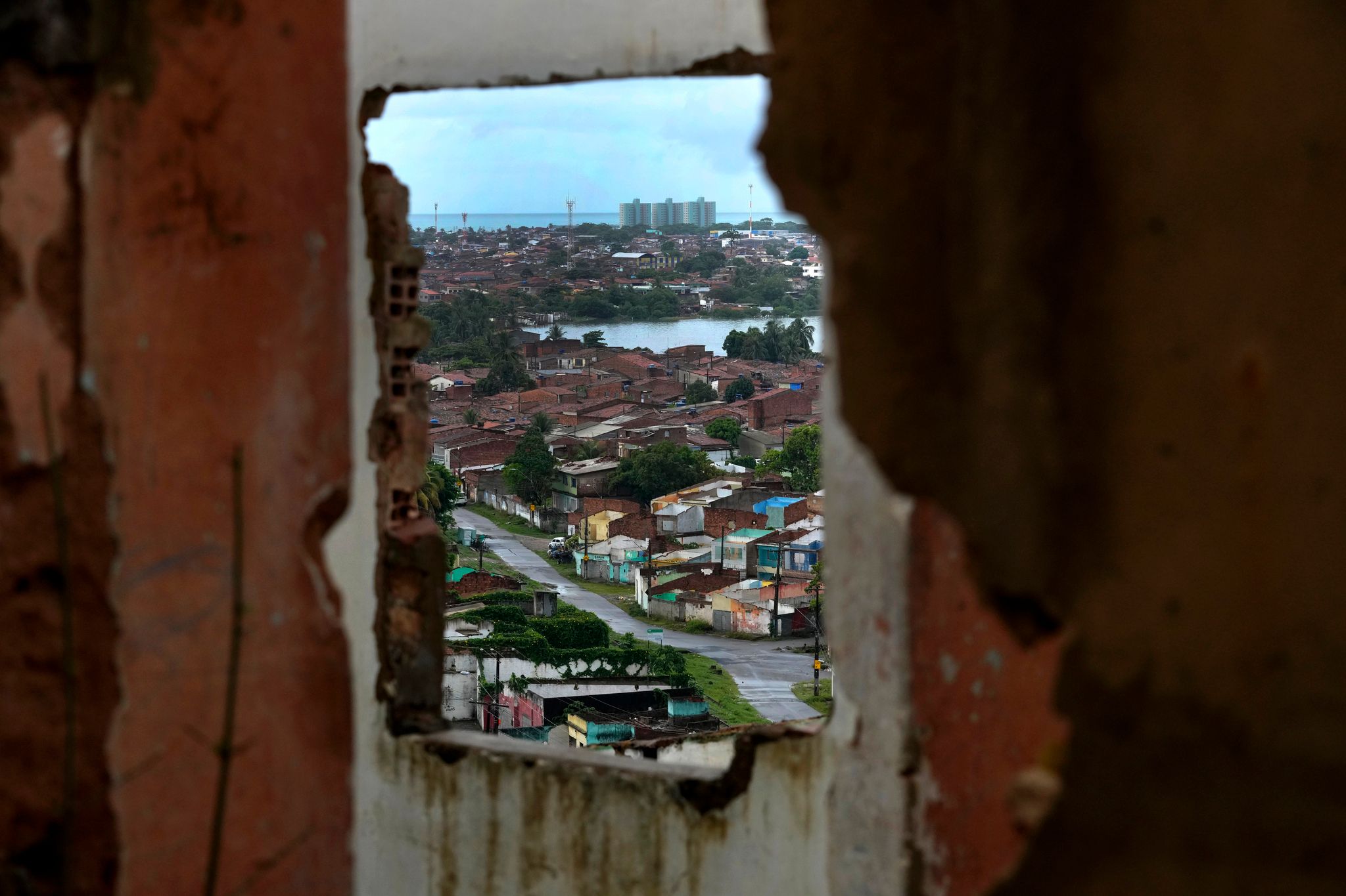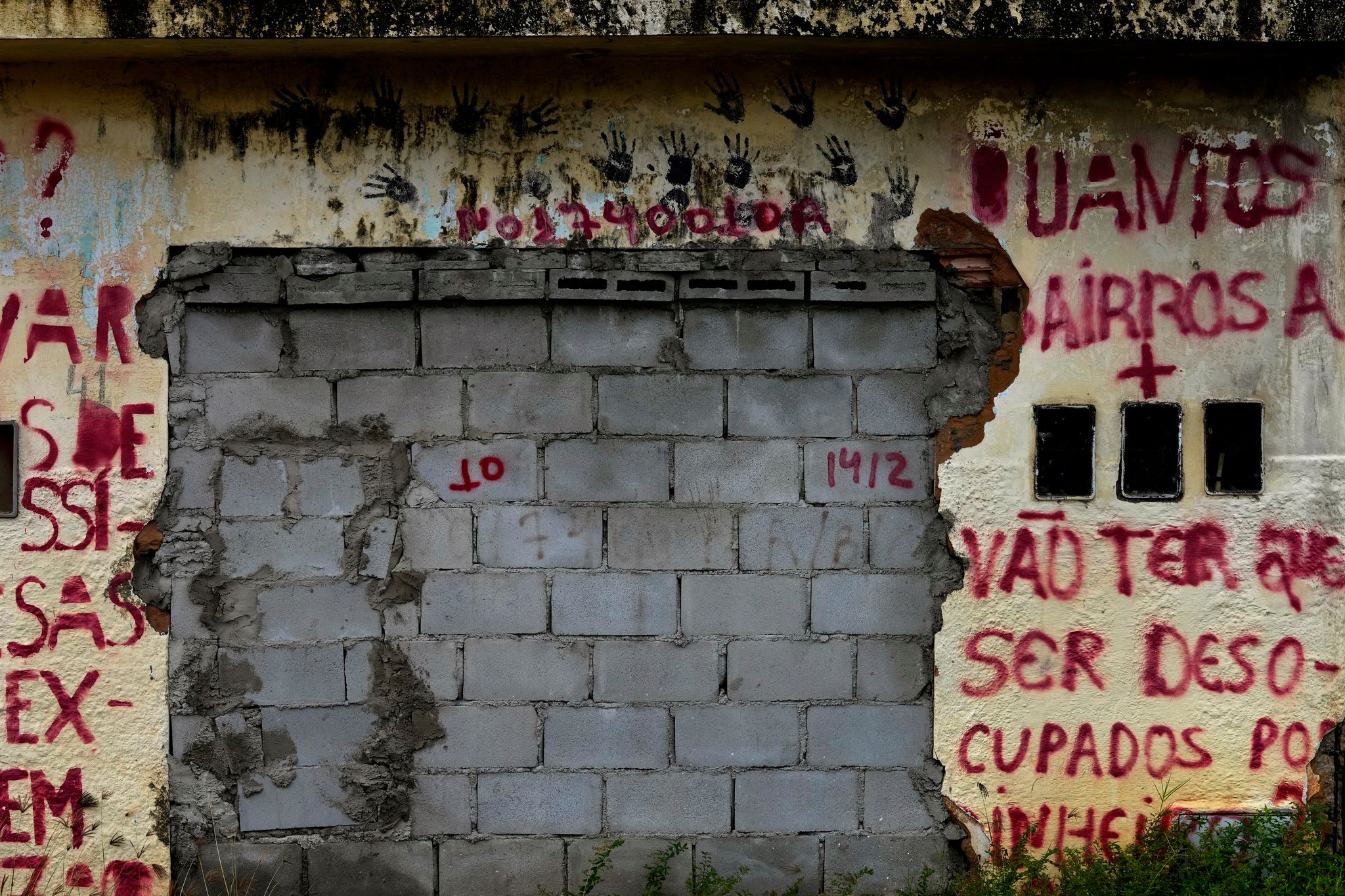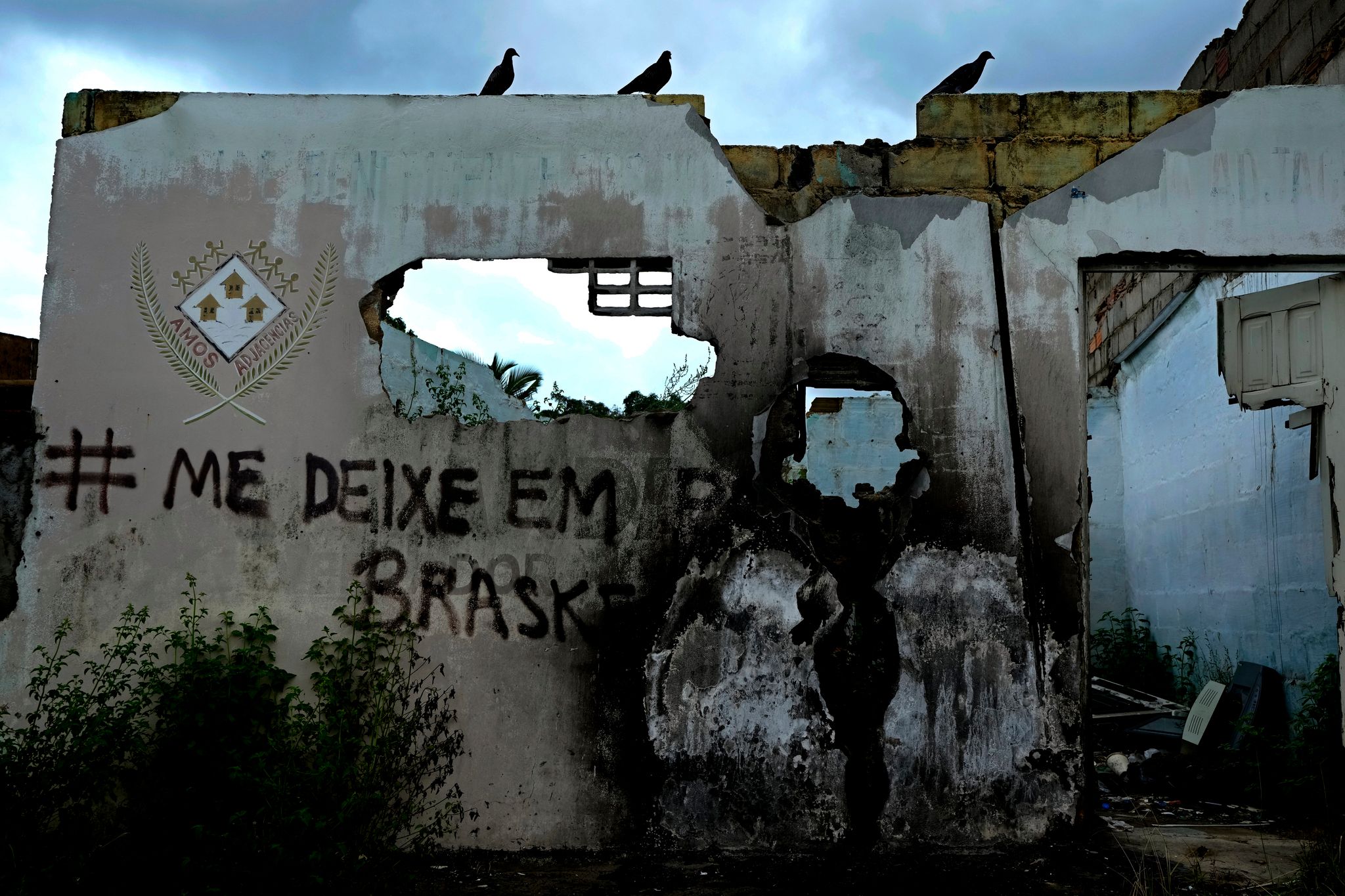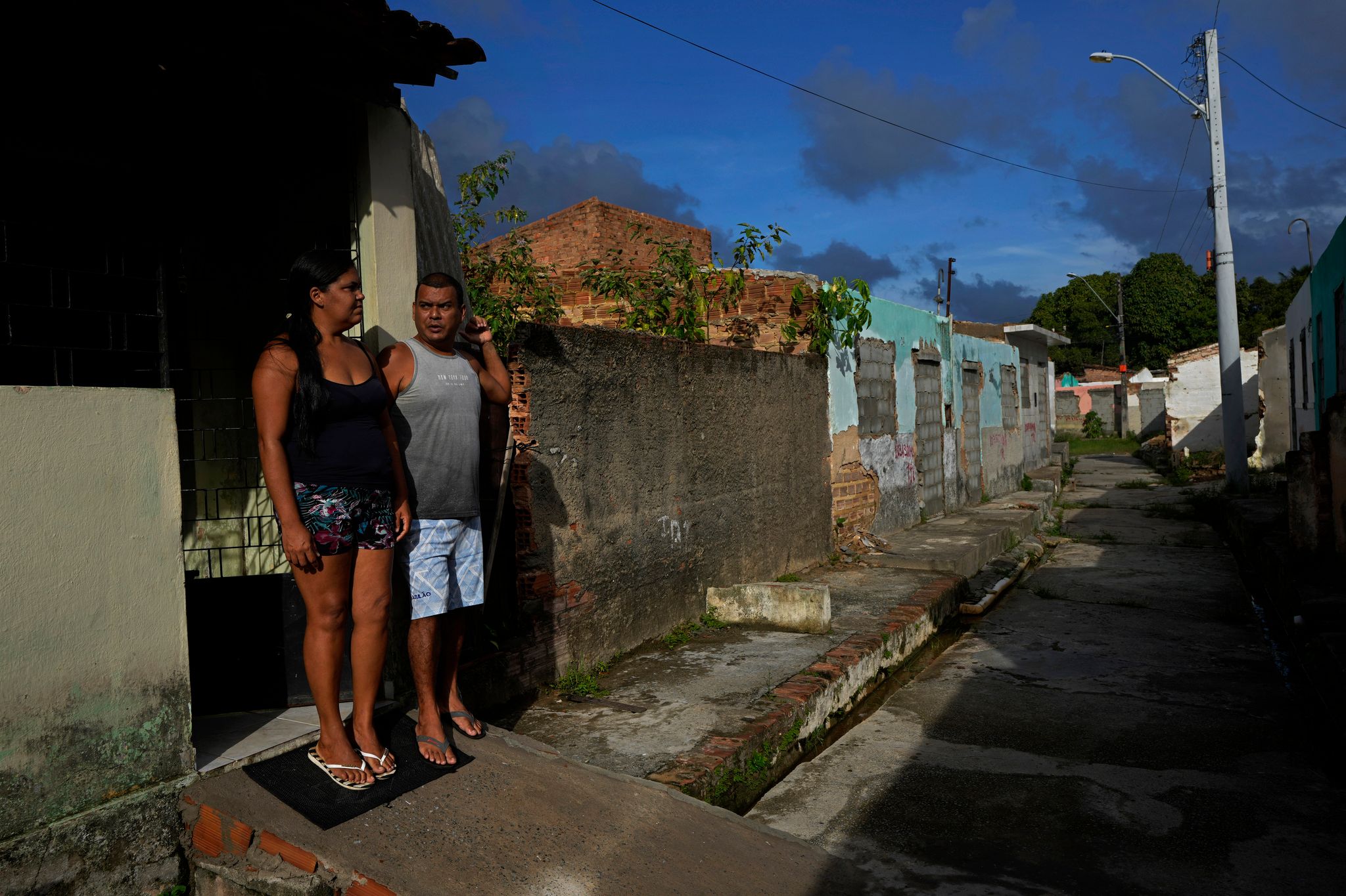 達席爾瓦的父母站在家門口,看著空蕩蕩的貝貝杜羅社區(Bebedouro,暫譯),他們是最後一戶不願搬離社區的住戶。