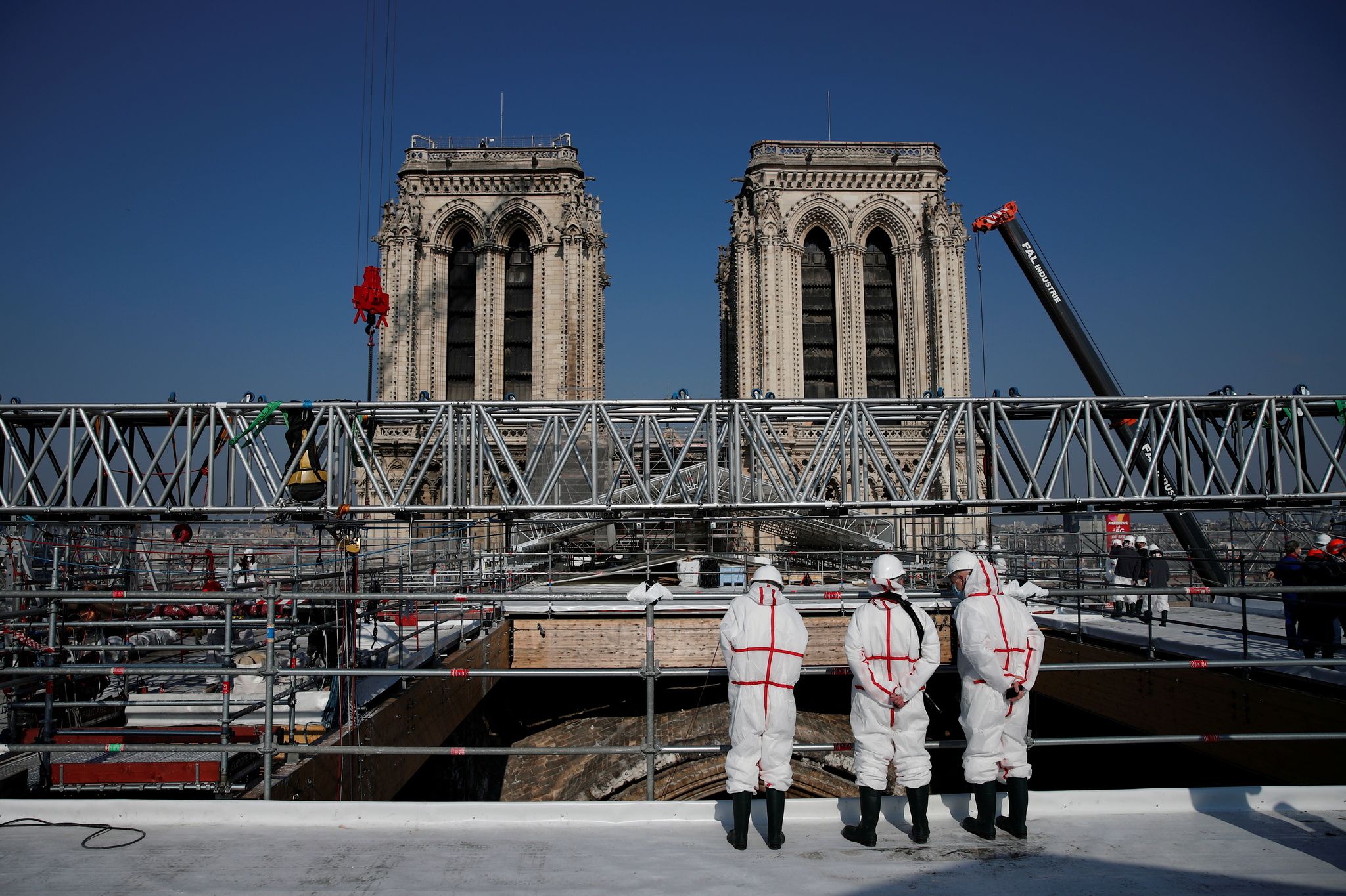 巴黎聖母院的重建工程如火如荼地進行,不料近日建築工人遇上一個小插曲,讓所有工程暫時停滯下來。圖片拍攝於2021年4月。
