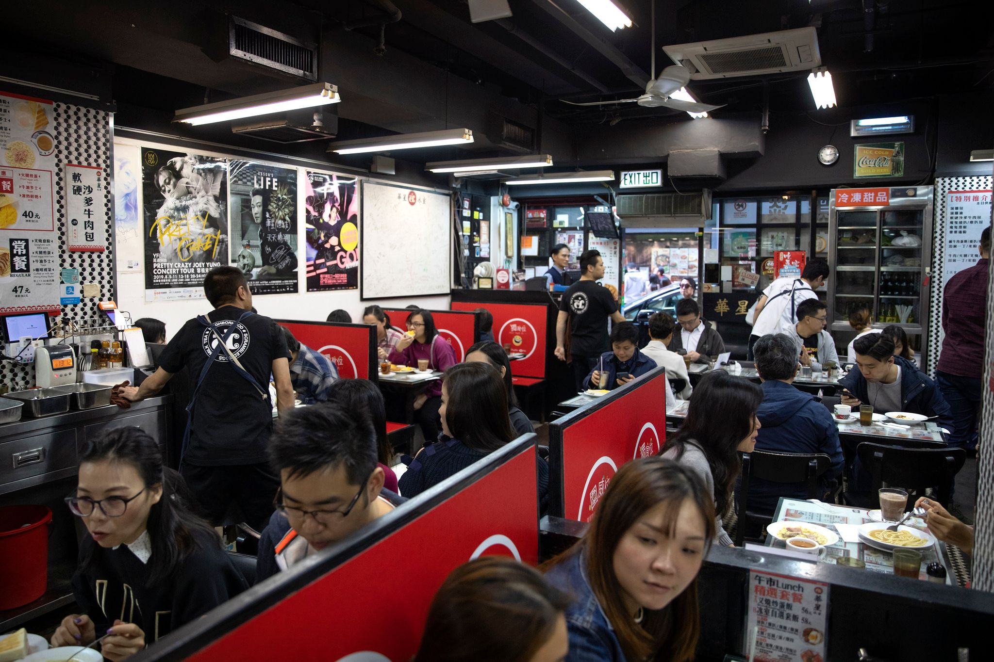 圖為2019年香港民眾在茶餐廳華星冰室(Capital Cafe)吃飯的照片。華星冰室的創始人為華星唱片前高層,因其主打1980年代情懷,故有不少明星如陳奕迅、楊千嬅及梁漢文等人捧場。