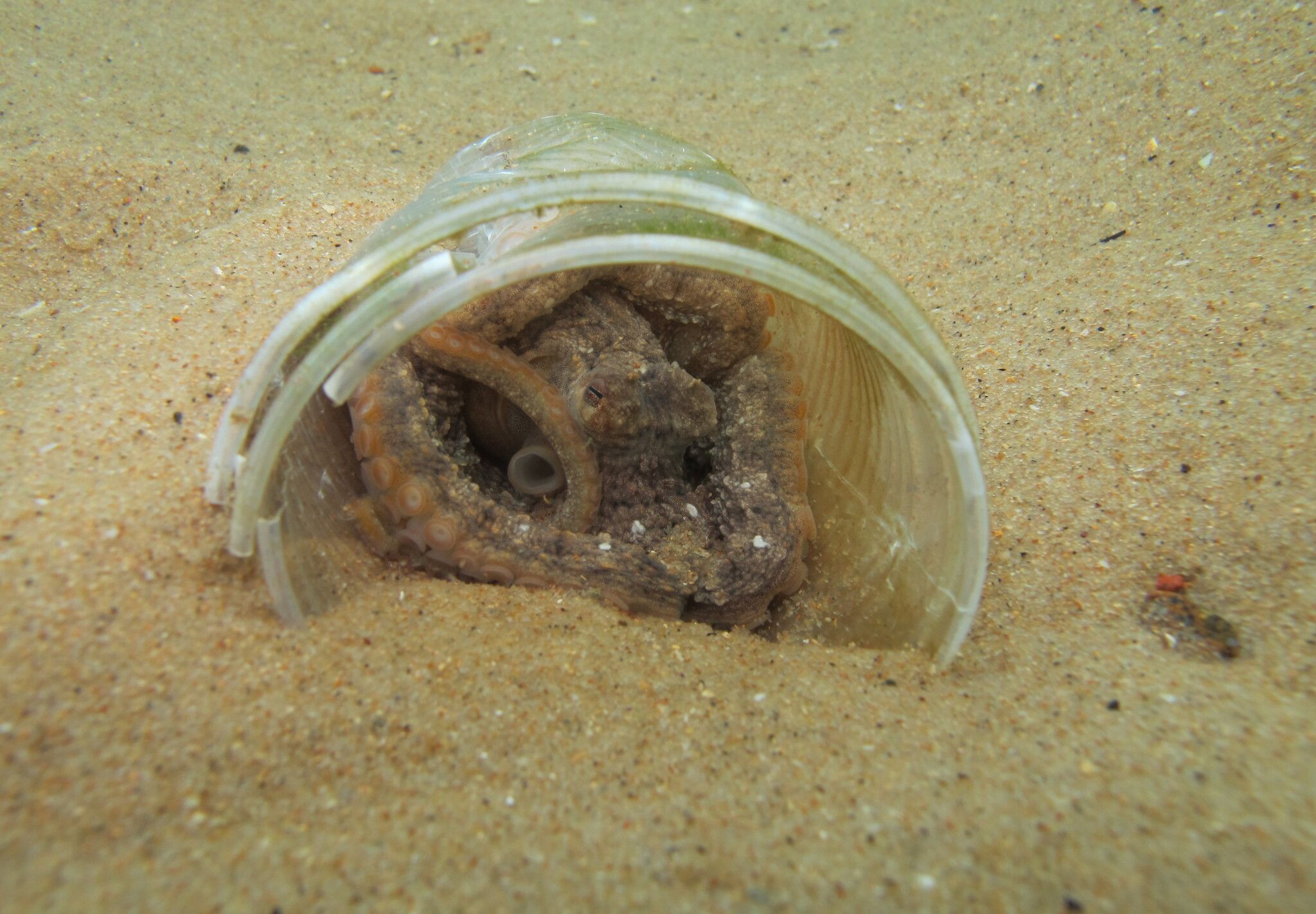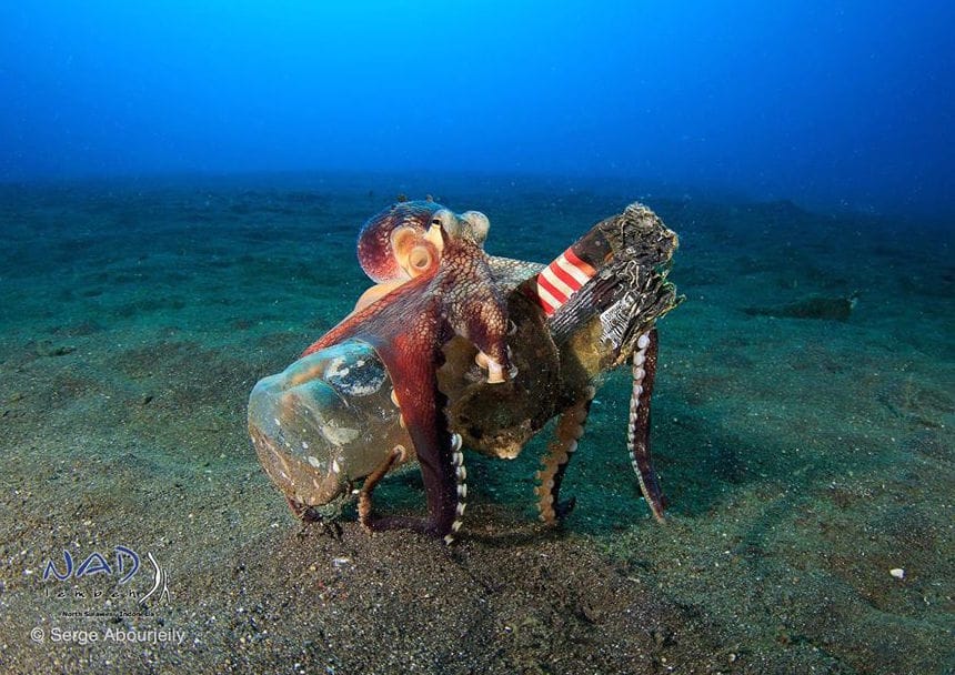 除了寄居蟹,現在科學家發現,章魚也會將人類丟進海裡的垃圾,拿來當一時的棲身之所,有時甚至會在裡面產卵養育後代。