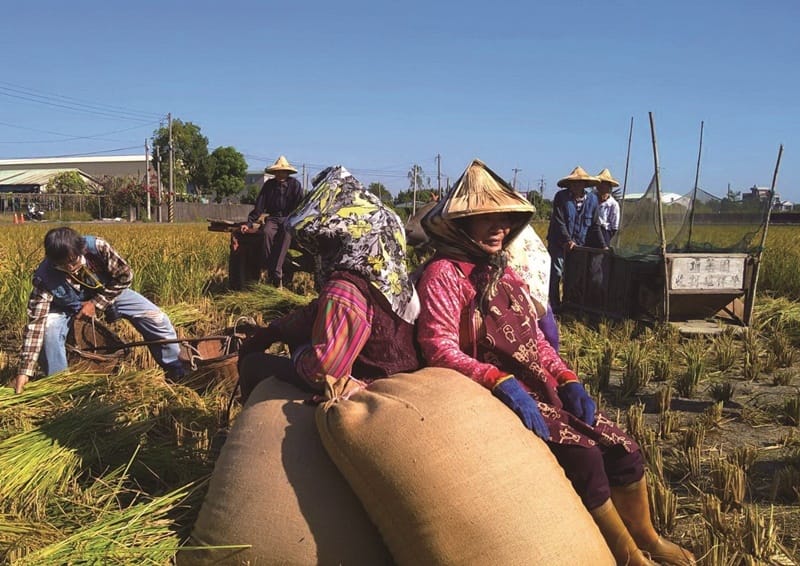 參與演出舊時農忙收割稻米的阿嬤說,有機會到田裡活動筋骨,又有錢賺真不錯。